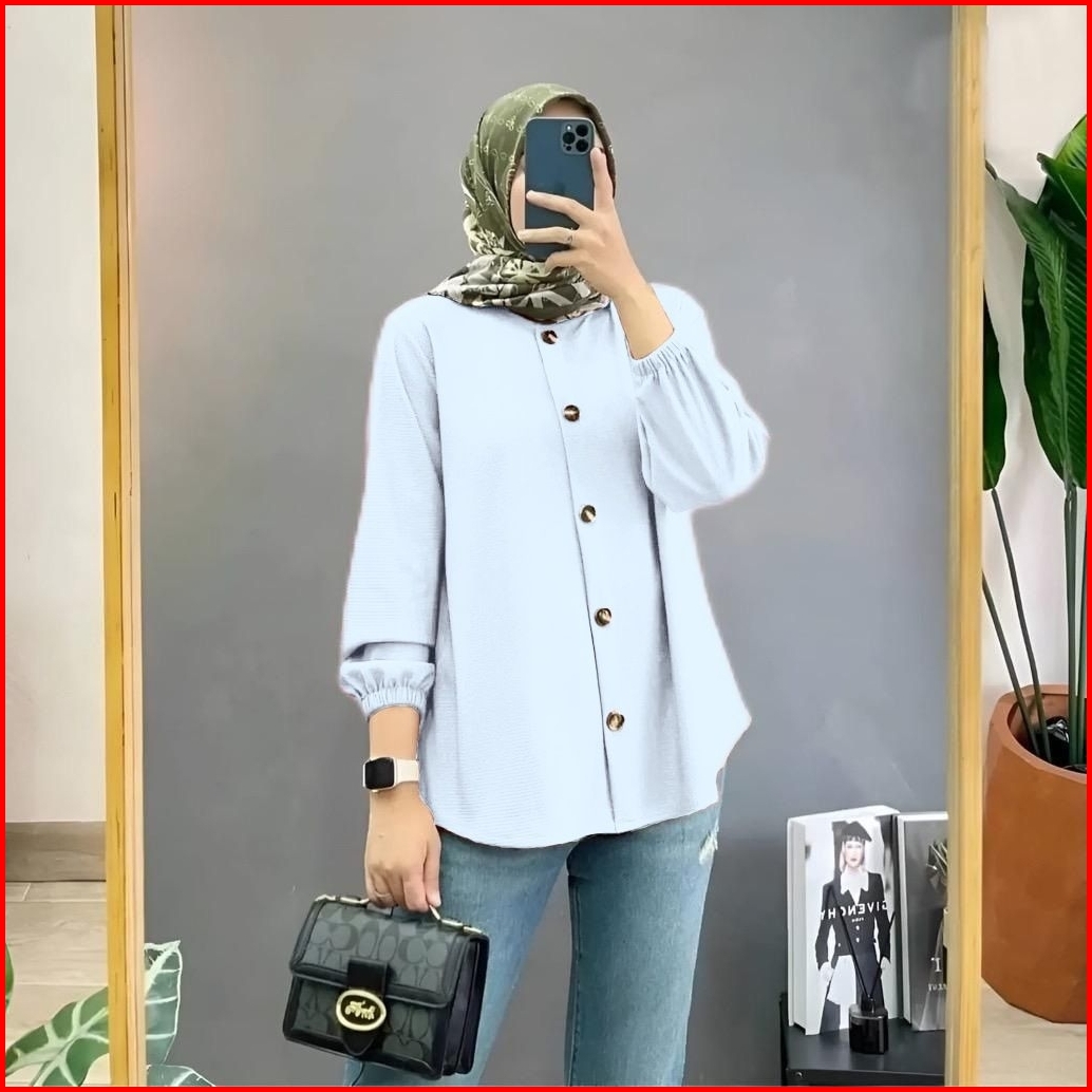 Atasan Wanita Lengan Karet Kekinian Kemeja Wanita Crinkle Airflow Kemeja Wanita Jumbo