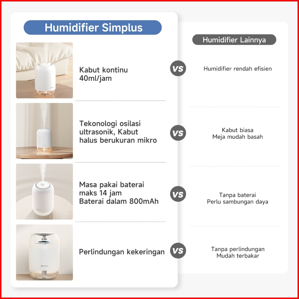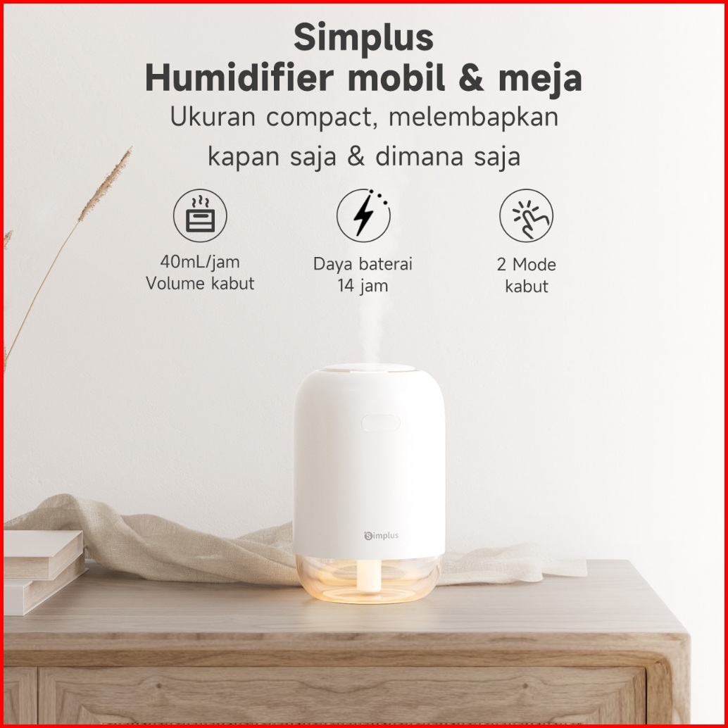 Simplus Humidifier Rumahan Mobil Meja Tanpa Kabel Portabel Kapasitas 250ml Daya Baterai 14 Jam