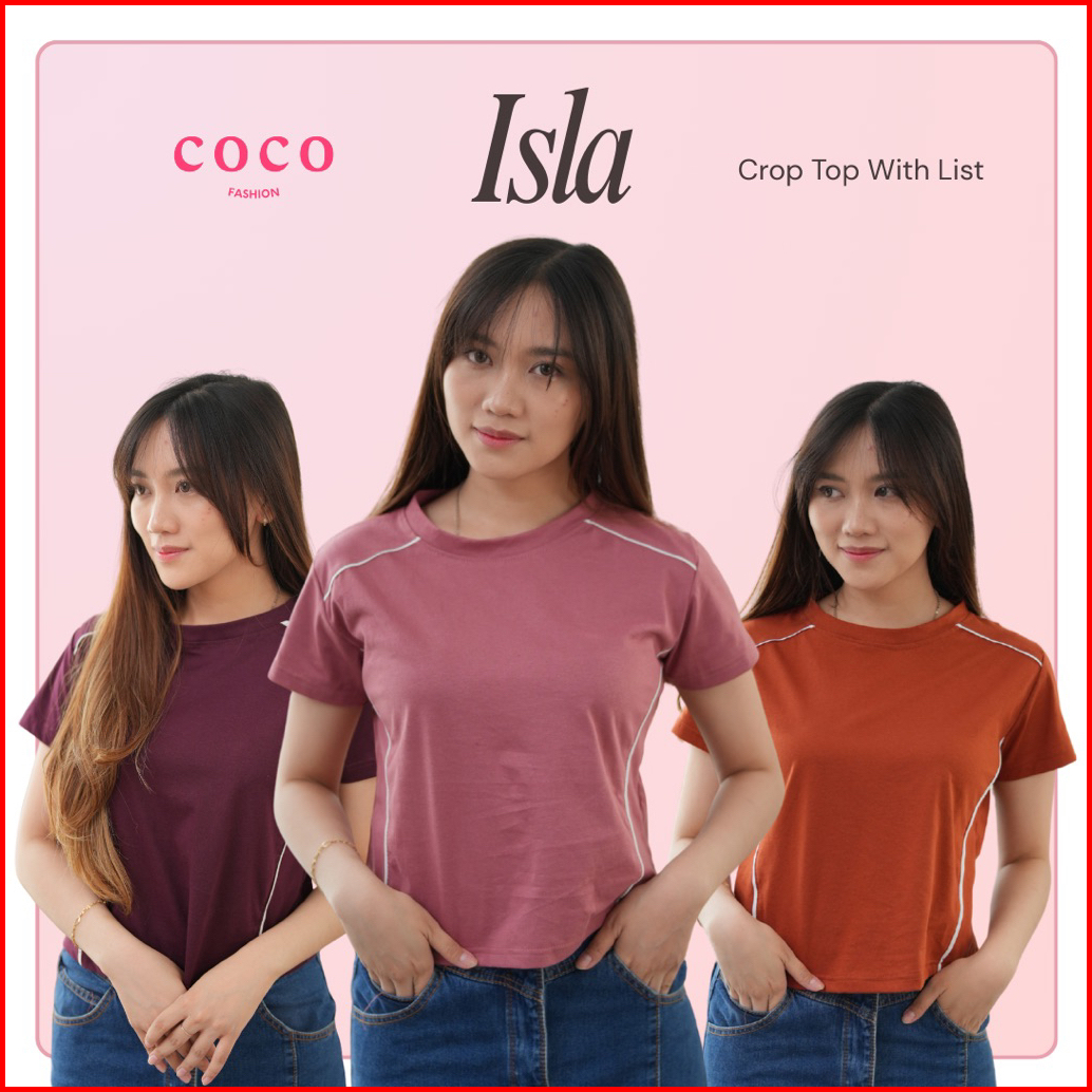 Atasan Wanita Kaos Crop Lengan Pendek Isla Top Regular Fit Active Girl Style Cotton Combed Premium Size M L Xl Basic Pol