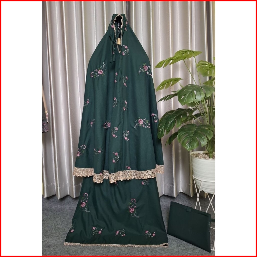 Aliyah-mukena Dewasa Bordir Bunga Melati Mawar Katun Premium Free Tas