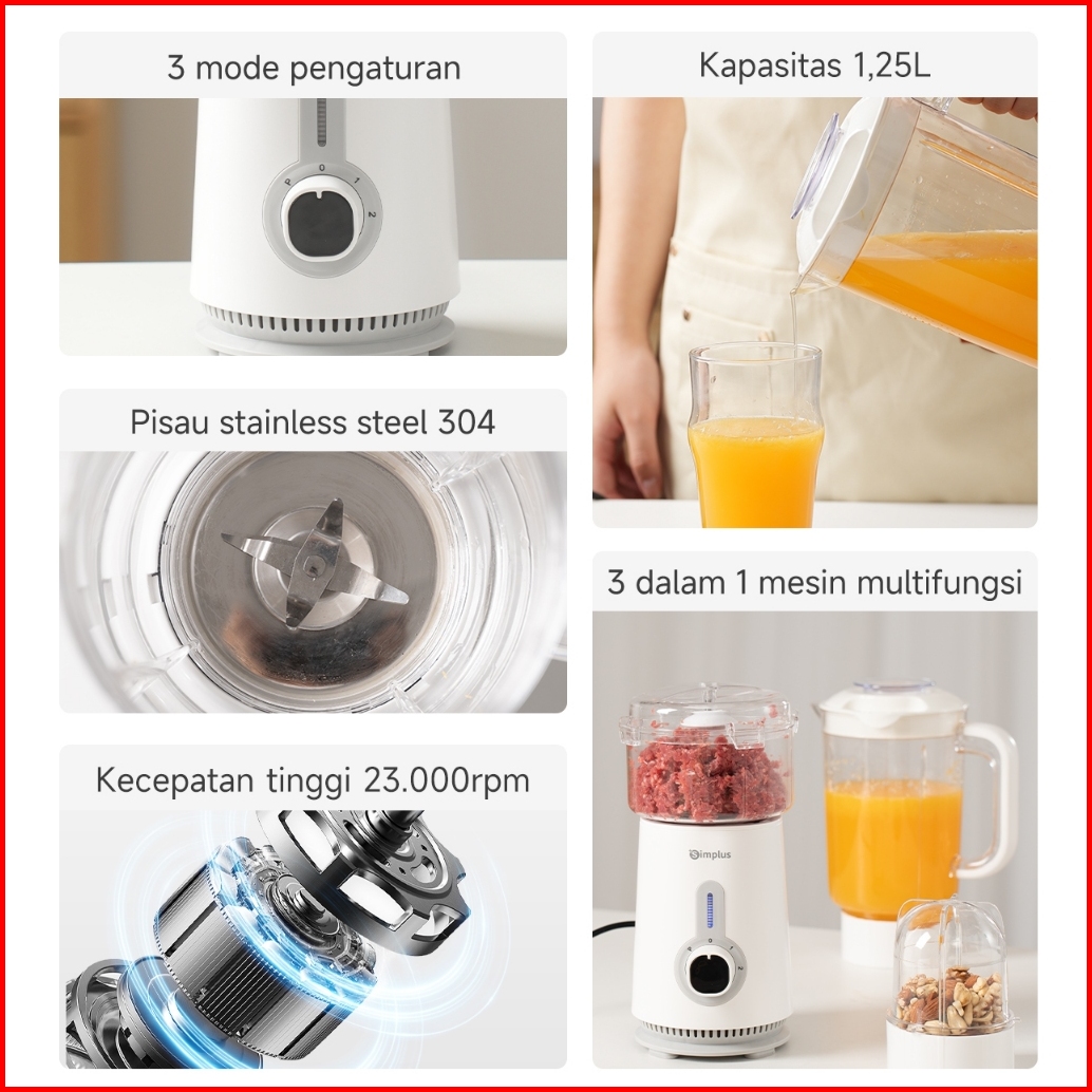 Simplus Blender Serbaguna 1 25l - 380w - Pelengkap 3 Cangkir Banyak Fungsi