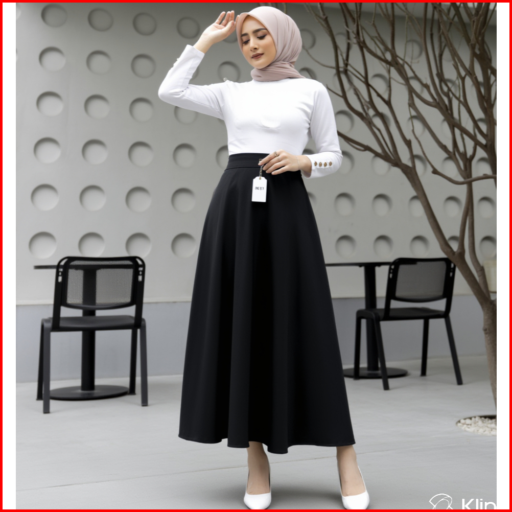 Rok Panjang Flare Wanita Elegan Bahan Premium Rok A Line Polos Look Mewah Kekinian