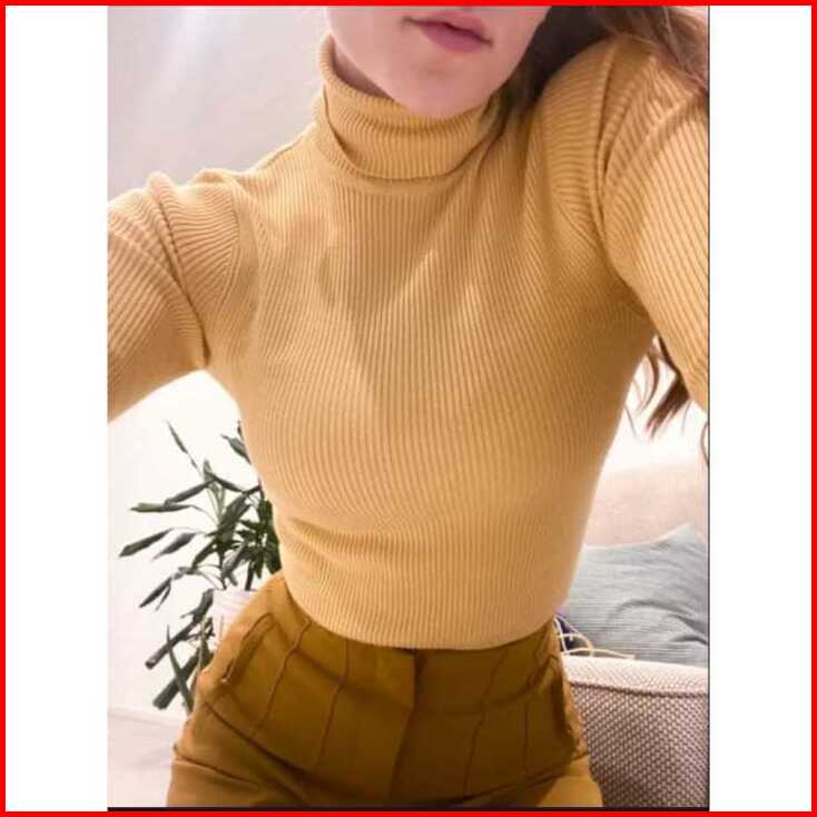 Rft.com T10 Kaos Kerah Tinggi Wanita Dewasa Lengan Panjang Turtle Neck Wanita Ootd Kekinian