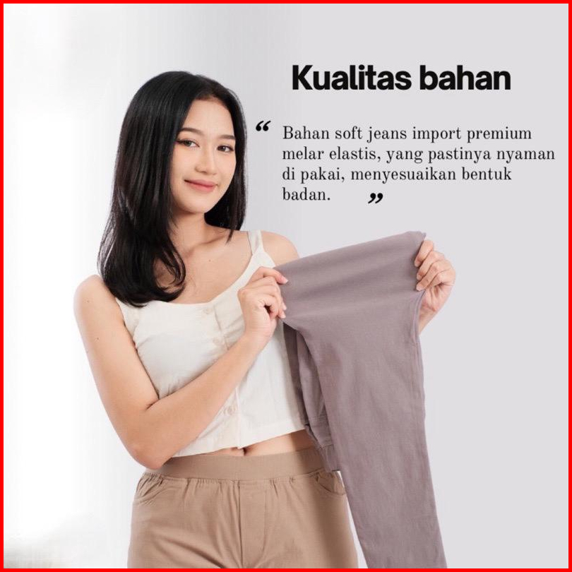 Sinctaro Elizabeth Pants Celana Panjang Wanita Bahan Soft Jeans Chinos Ottomen Melar Elastis Standar - Jumbo