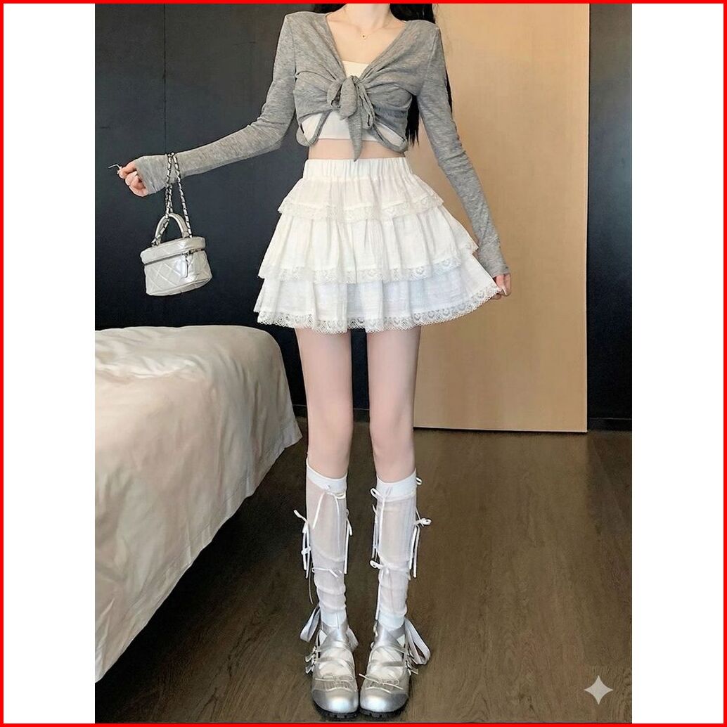 Deer Fashion - Rok Aura Mini Susun Renda Rok Mini Layer Korean Style