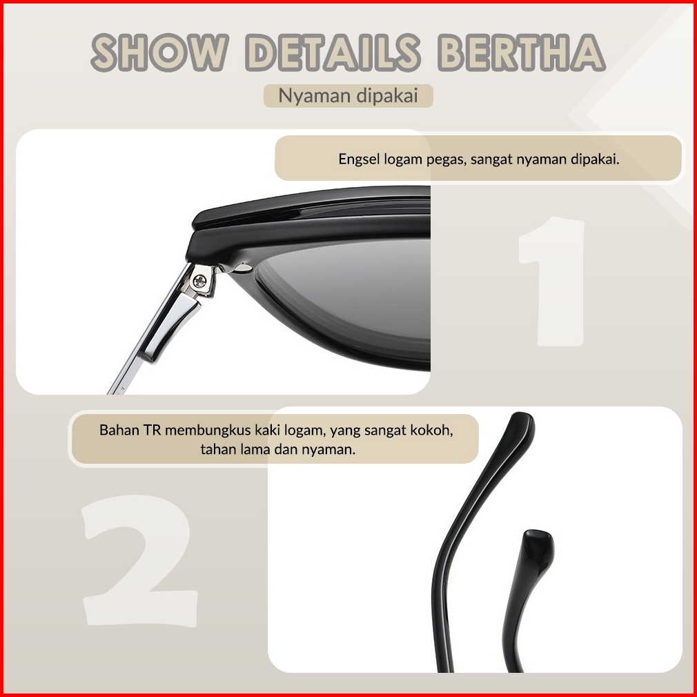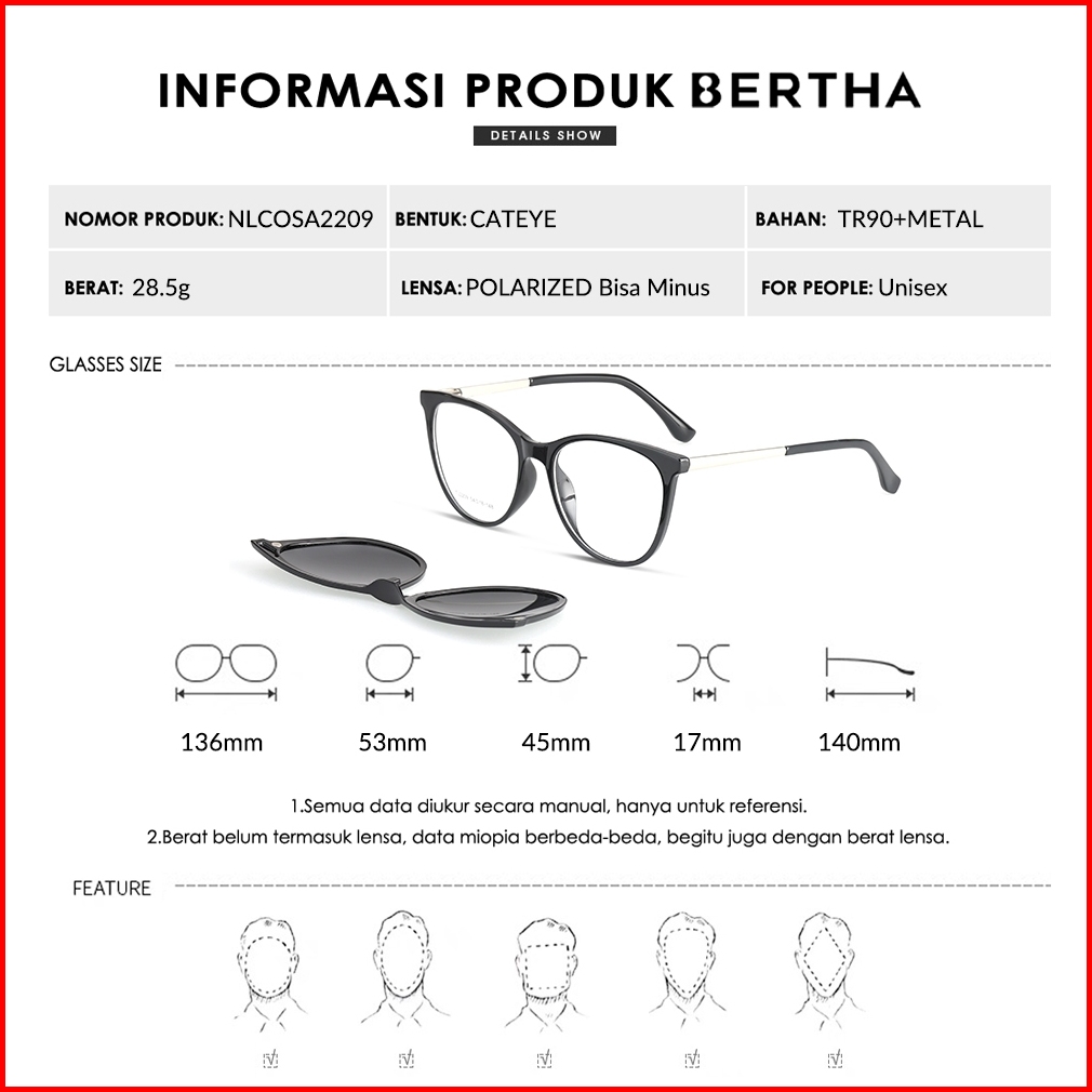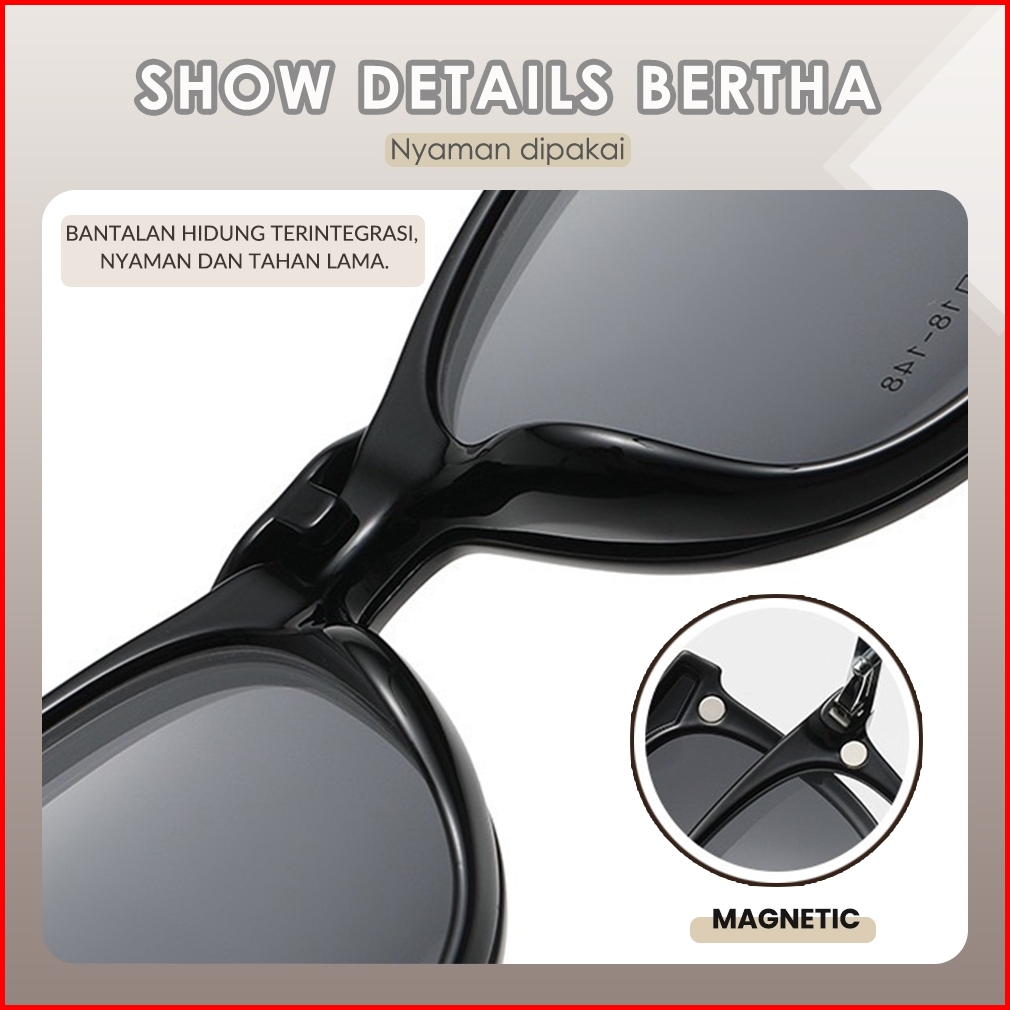 Bertha Kacamata Clip On 2in1 Model Cat Eye Free Lensa Clip Polarized Bahan Tr90 Metal Ringan Pria Wanita Bisa Minus 2209