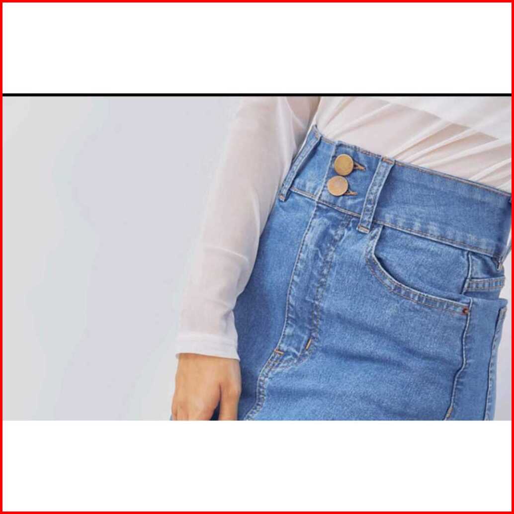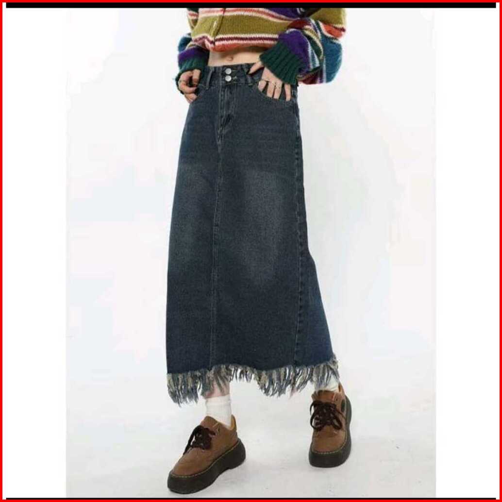 Rok Denim Skirt Rok Jeans Vintage Midi Skirt Jeans Rawis A-line Kancing 2 Rok Jeans Wanita Korea Style Rok Jeans Highwai