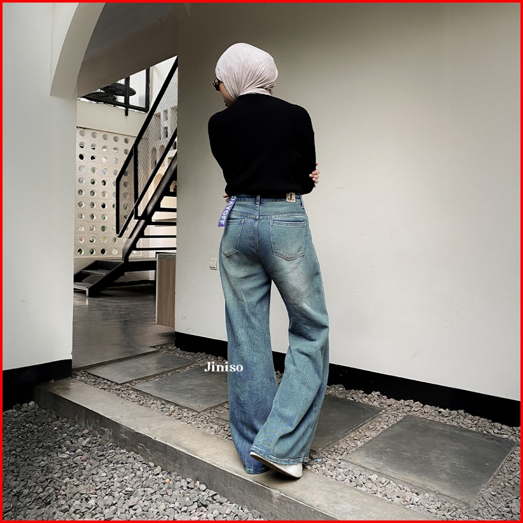 Jiniso - Highwaist Flare Cutbray Jeans 370 Dayoff