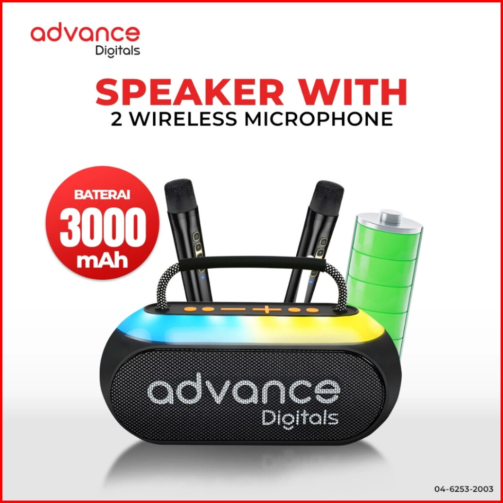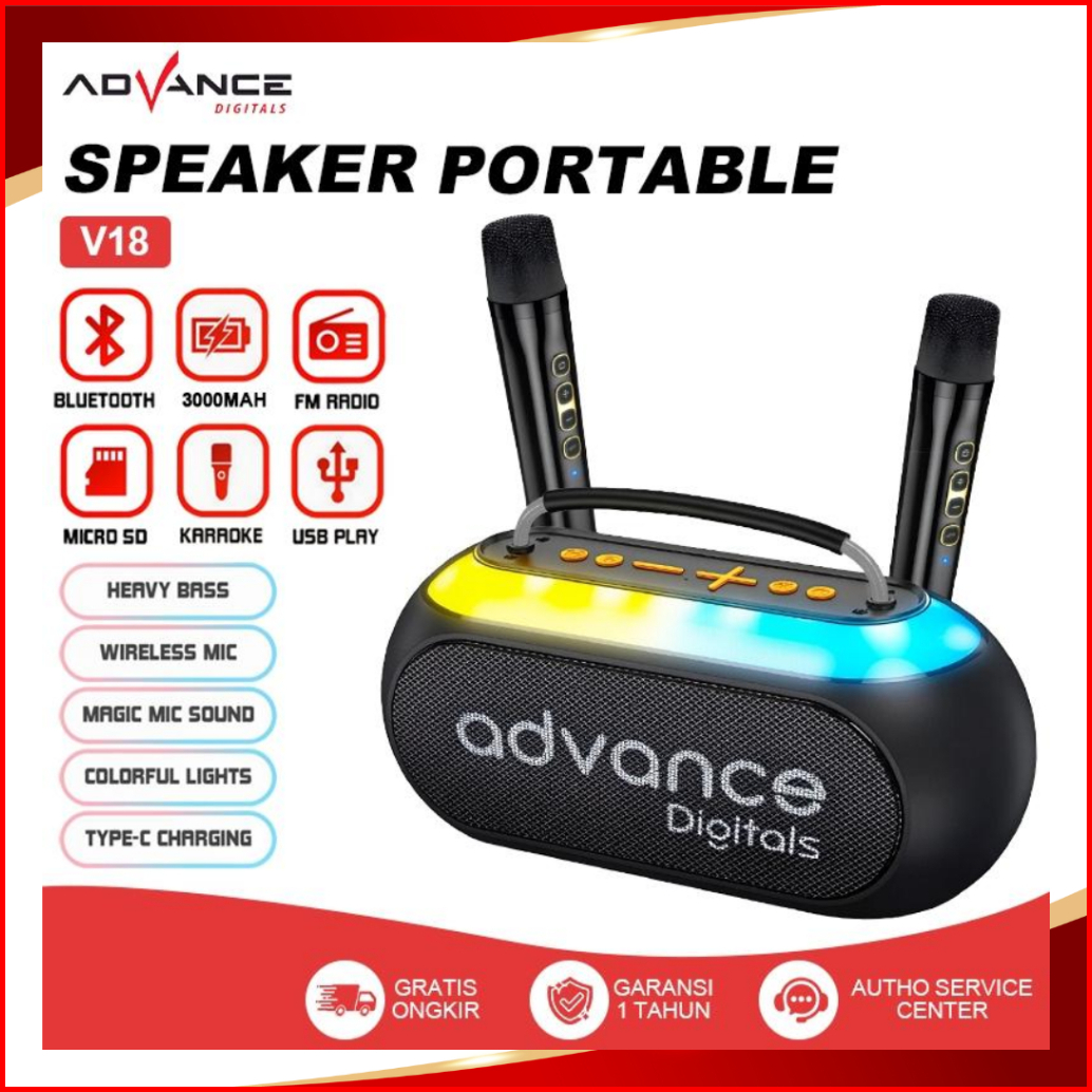 Advance V18 Portable Speaker Bluetooth Dual Microphone Karaoke Bergaransi Resmi 1 Tahun
