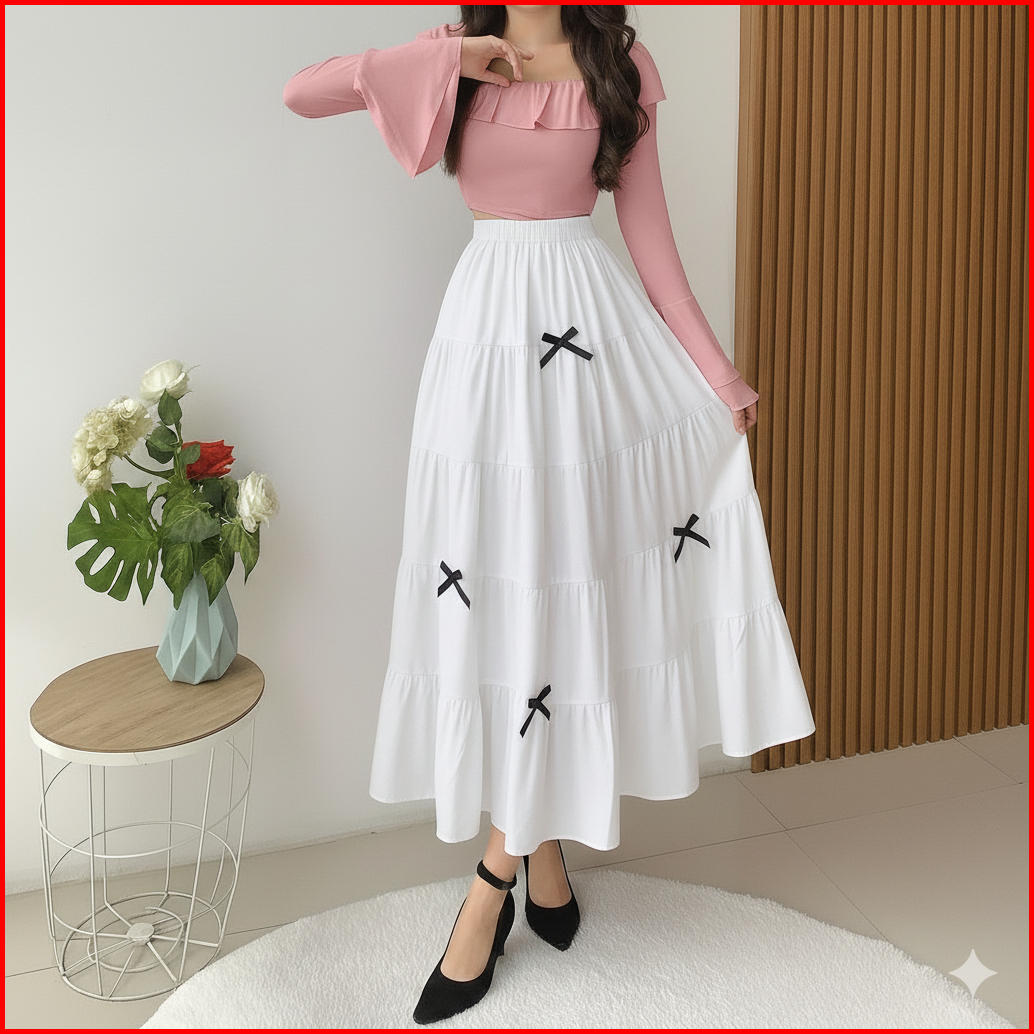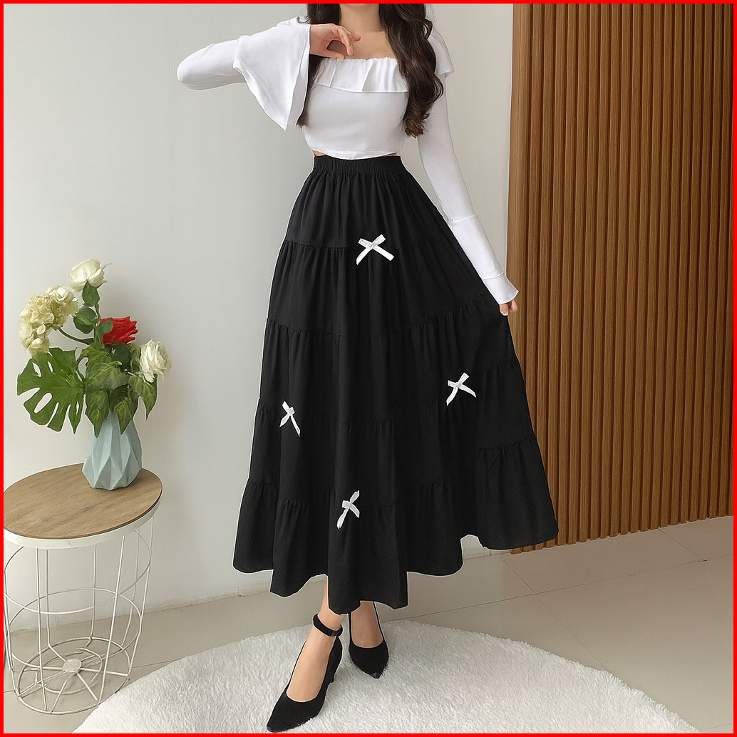 Fashion Rok Wanita Twiscone Long Skirt Dengan Pita