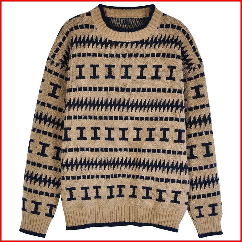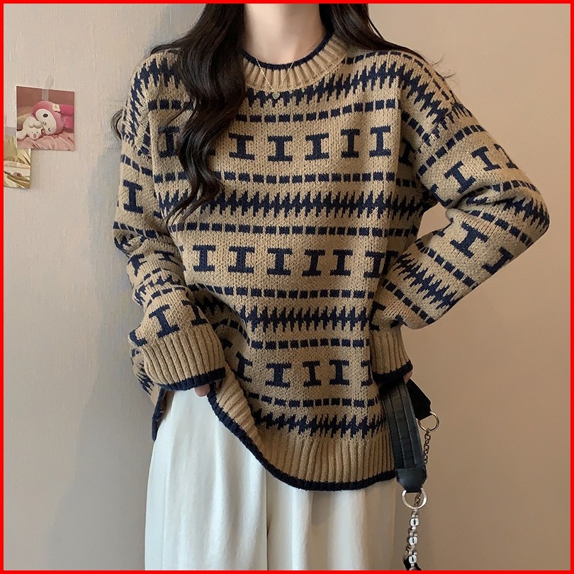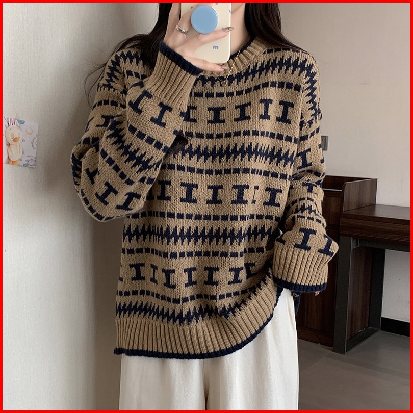 Promosi Harga Rendahsweater Pullover Leher Bulat Jacquard Longgar Yang Chic Untuk Wanita