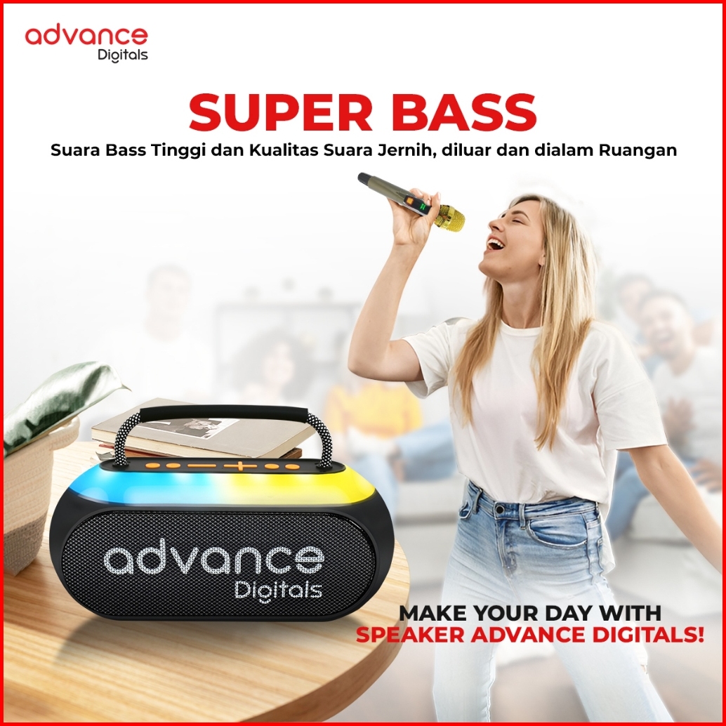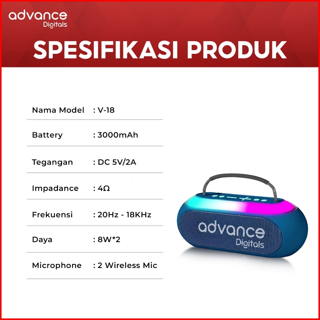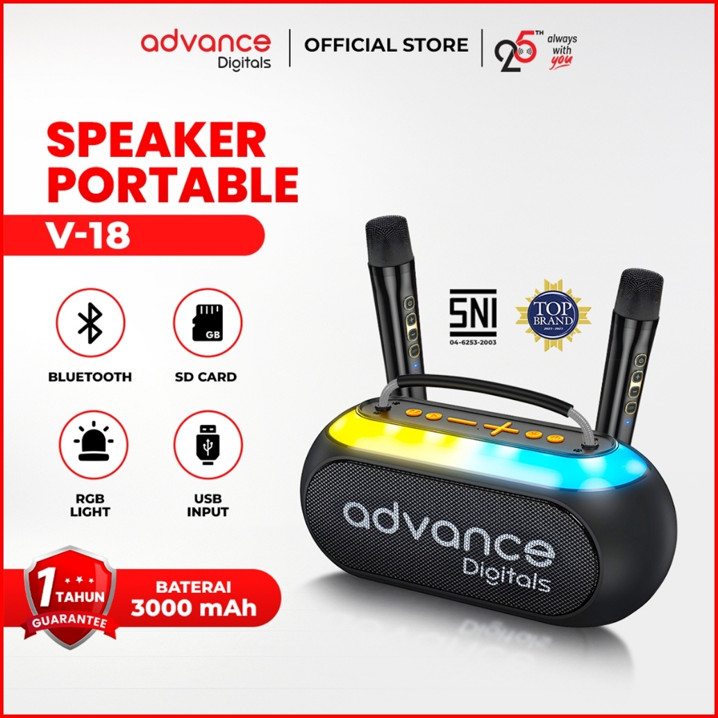 Advance V18 Portable Speaker Bluetooth Dual Microphone Karaoke Bergaransi Resmi 1 Tahun