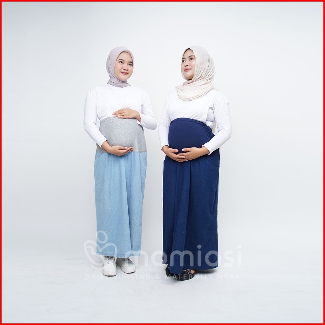 Momiasi - Clara - Irish Jeans Denim Premium - Rok Celana Hamil Jeans Wanita Kekinian - Bumil Busui Friendly