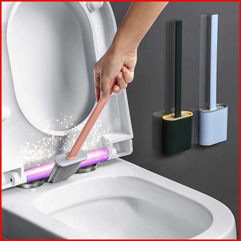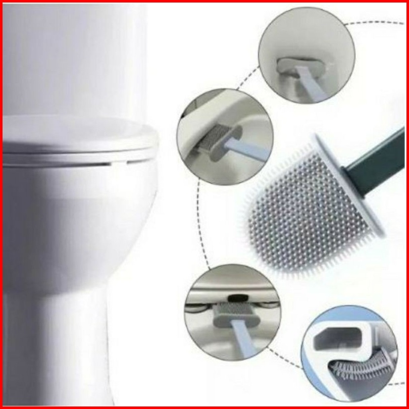 Sikat Pembersih Kloset Wc Toilet Silikon Jongkok Duduk Gagang Panjang Fleksibelbrush Silicone Flexible Dengan Wadah Aest