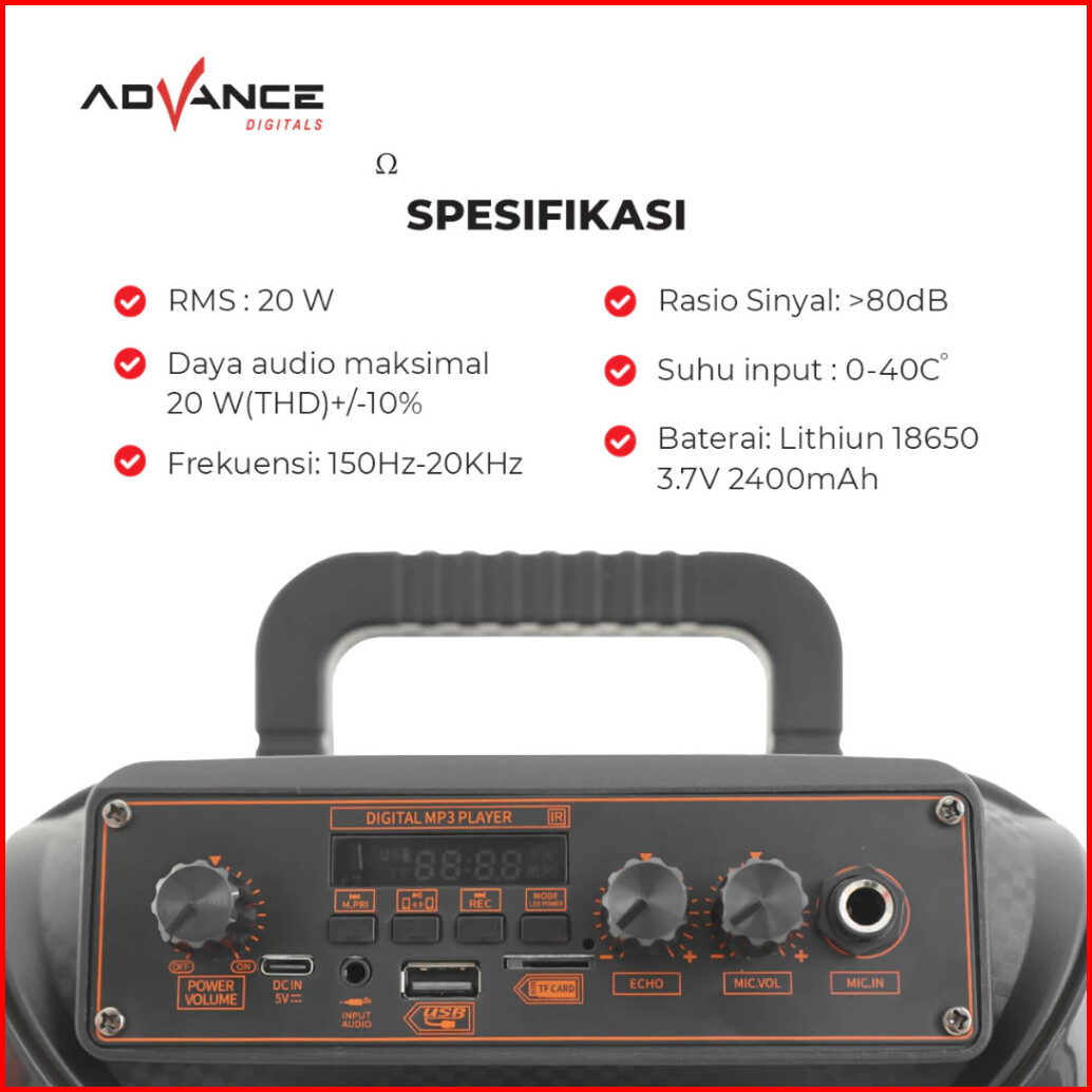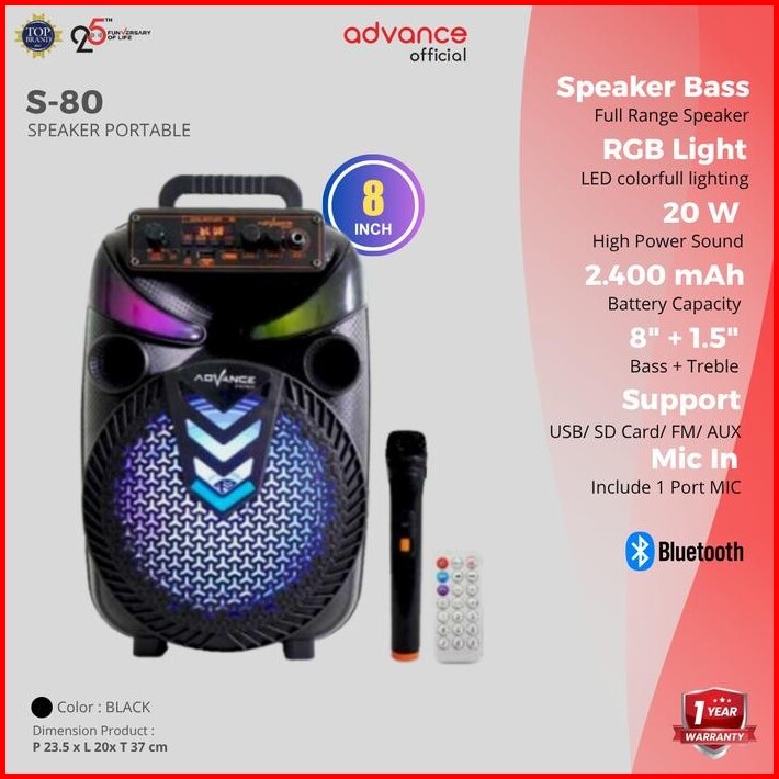 Advance S80 Speaker Portable Bluetooth Free 1 Microphone Wireless Exrta Power Sound