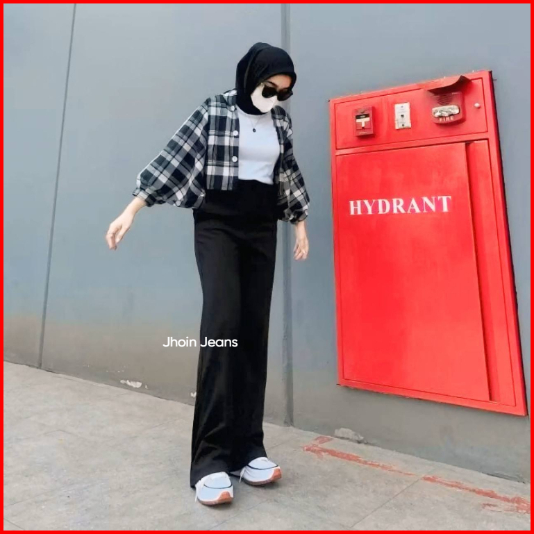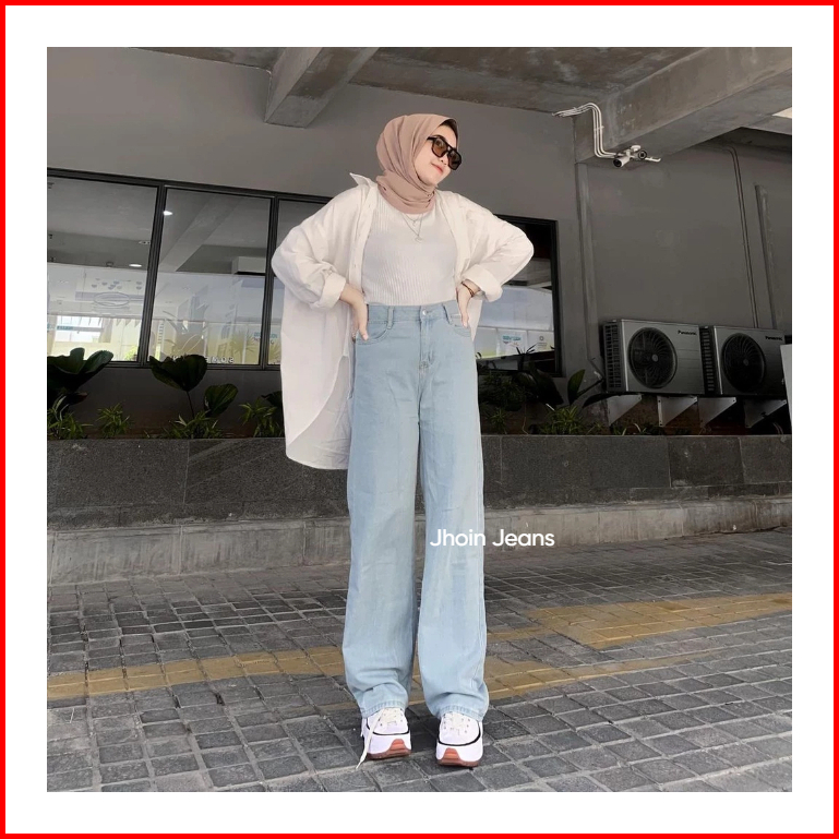 Jhoin Fashion - Celana Jeans Highwaist Kulot Loose Wanita Kekinian Premium Quality Baggyjeans