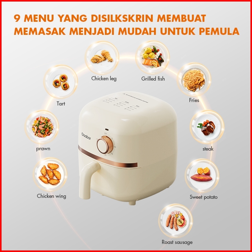 Gaabor Mini Air Fryer 2l Low Watt 600w Mesin Penggorengan Tanpa Minyak Anti Lengket Af20-ye01a
