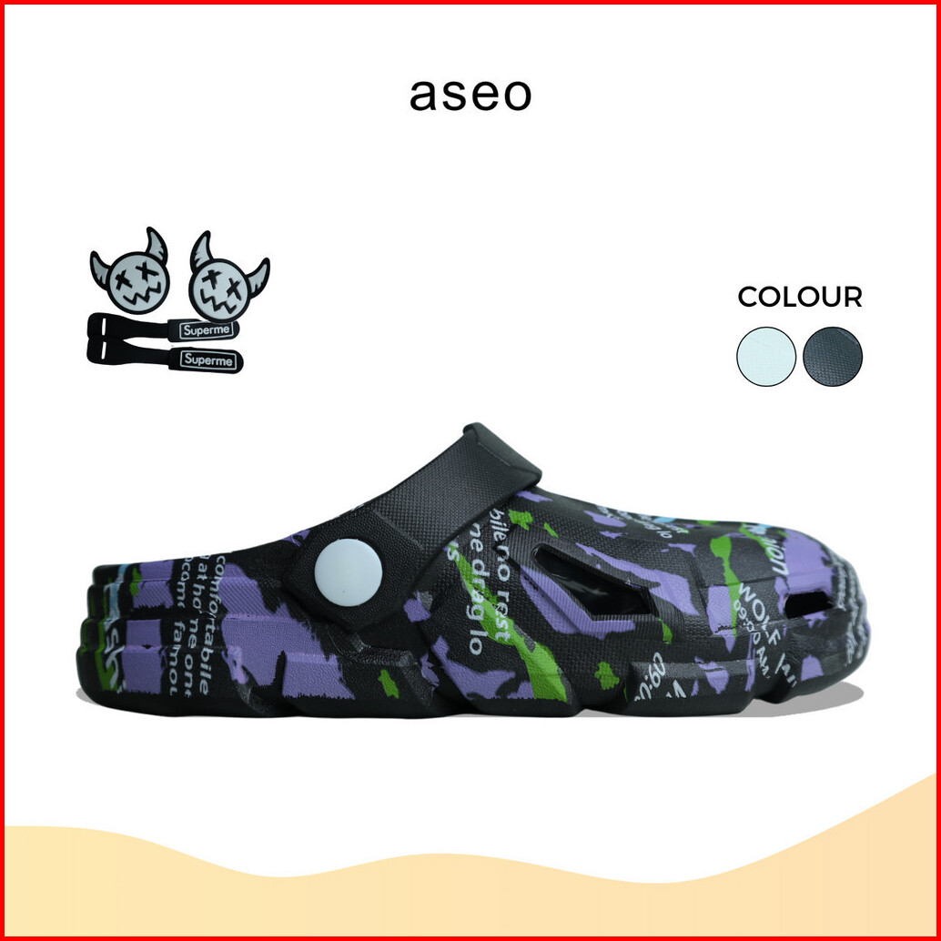 Aseo Sandal Pria Wanita Baim Clog Terbaru Slip On Kodok Import Anti Slip Karet Rubber Lucu H174