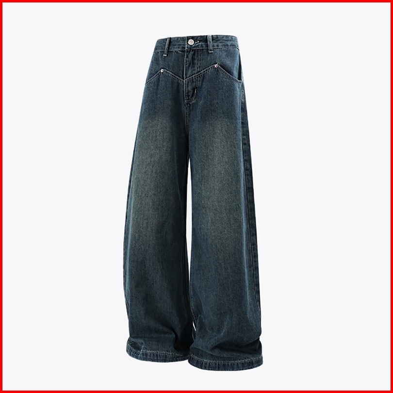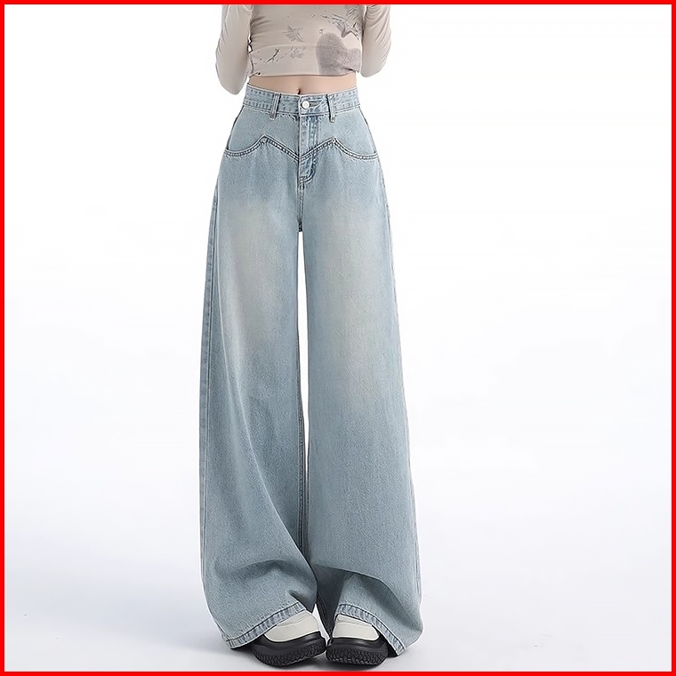 Keygirl Highwaist Baggy Jeans Biru Retro Premium Wanita Kekinian Korean Style Kulot Straight Jeans Loose Pants Celana Pa