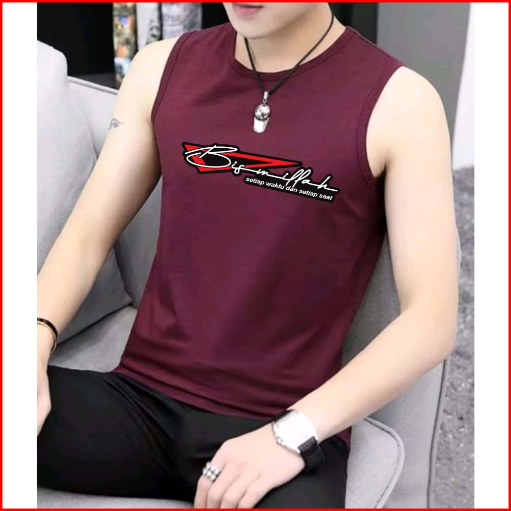 Kaos Tanktop Pria Dewasa Motif Bismillah Kaos Dalam Singlet Cowok Tanpa Lengan Olahraga Berkualitas