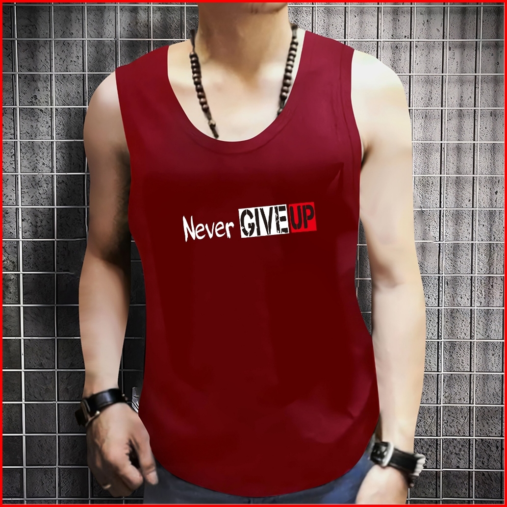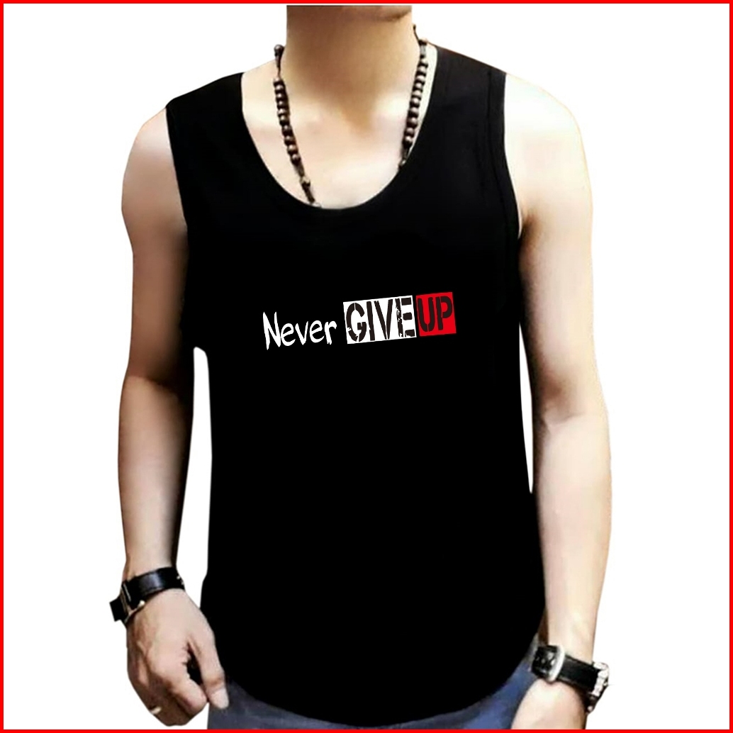 Never Give Up Singlet Santai Pria Lekbong Pria Tank Top Laki Laki Dewasa Atasan Promo Murah Kaos Dalam
