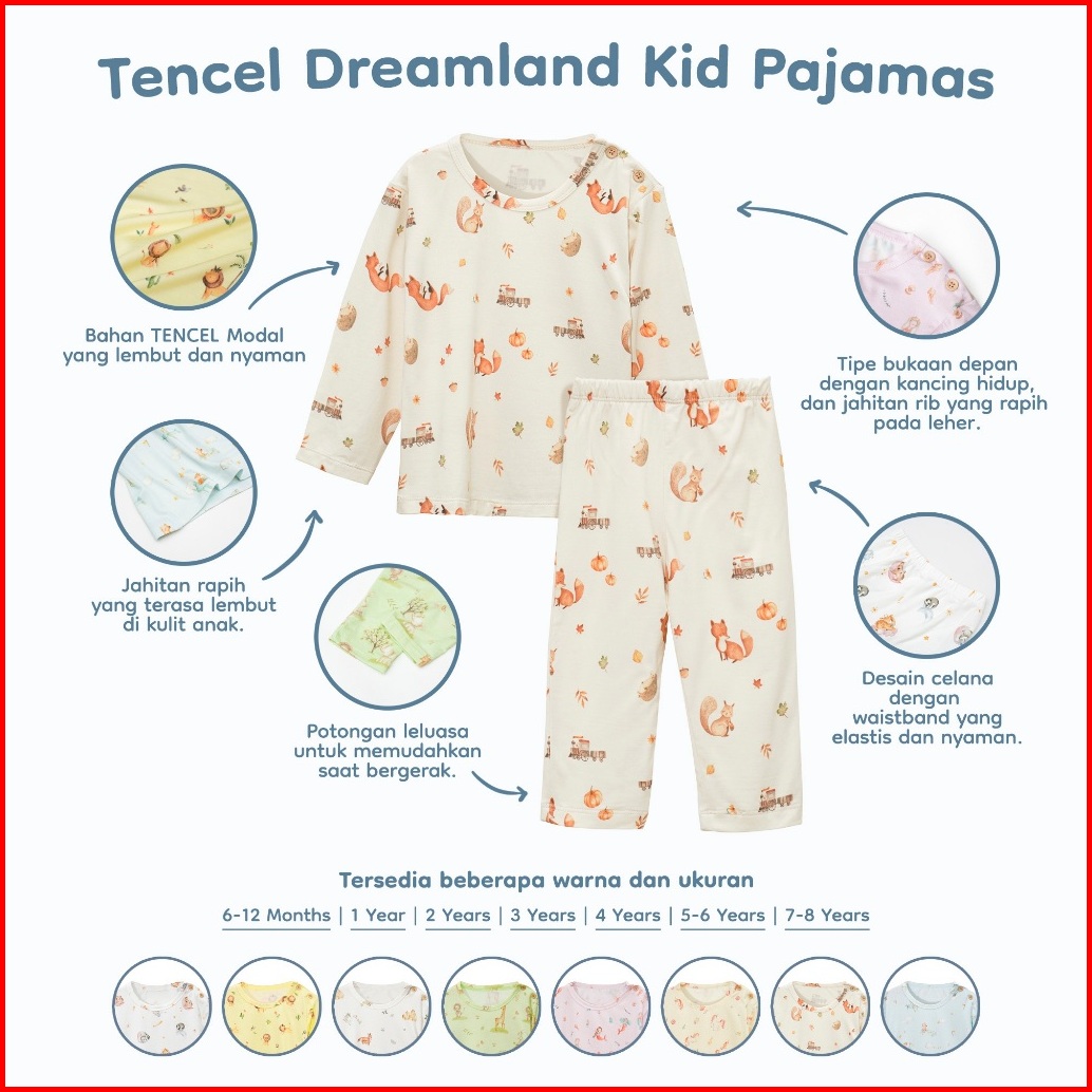 Nice Kids - Tencel Watercolor Dreamland Kids Pajamas Baju Tidur Anak Premium 1-8 Tahun