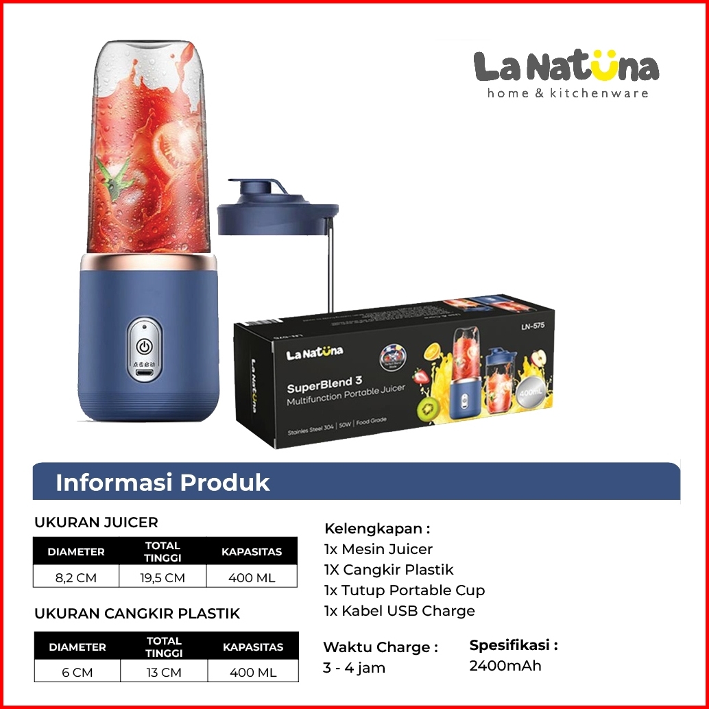 La Natuna Blender Jus Portable Mini 400ml Usb 6 Mata Pisau Juice Buah Rechargeable