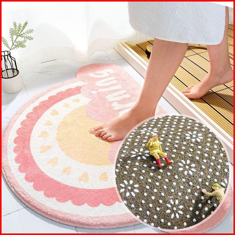 Osm Jkt H1004 Keset Kaki Rainbow Bulu Lembut Keset Kaki Bentuk Awan Alas Kaki Motif Pelangi Anti Slip