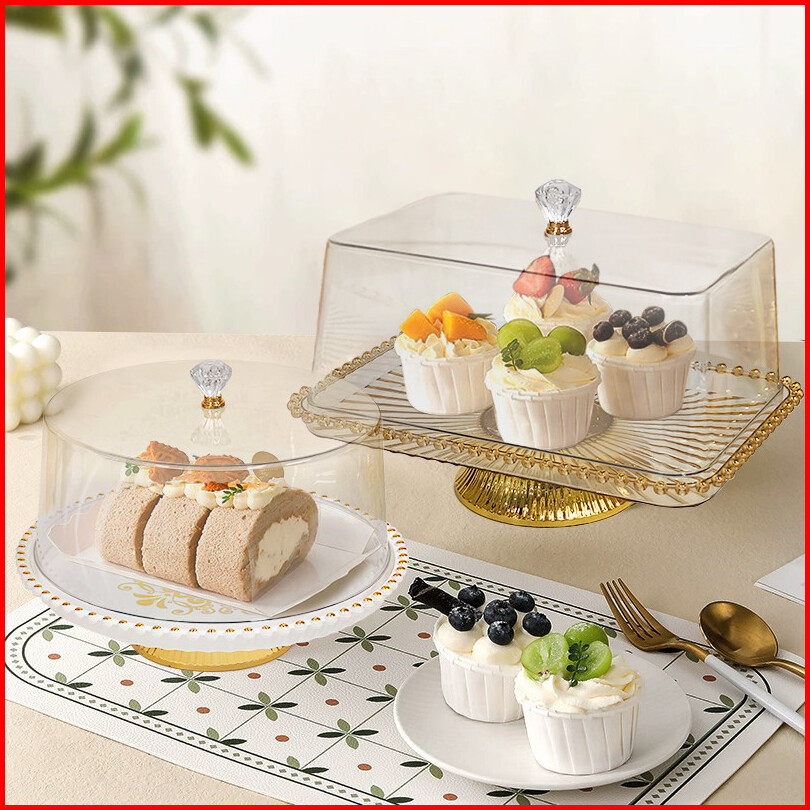 Tempat Kue Akrilik Aesthetic Warna Amber Putih