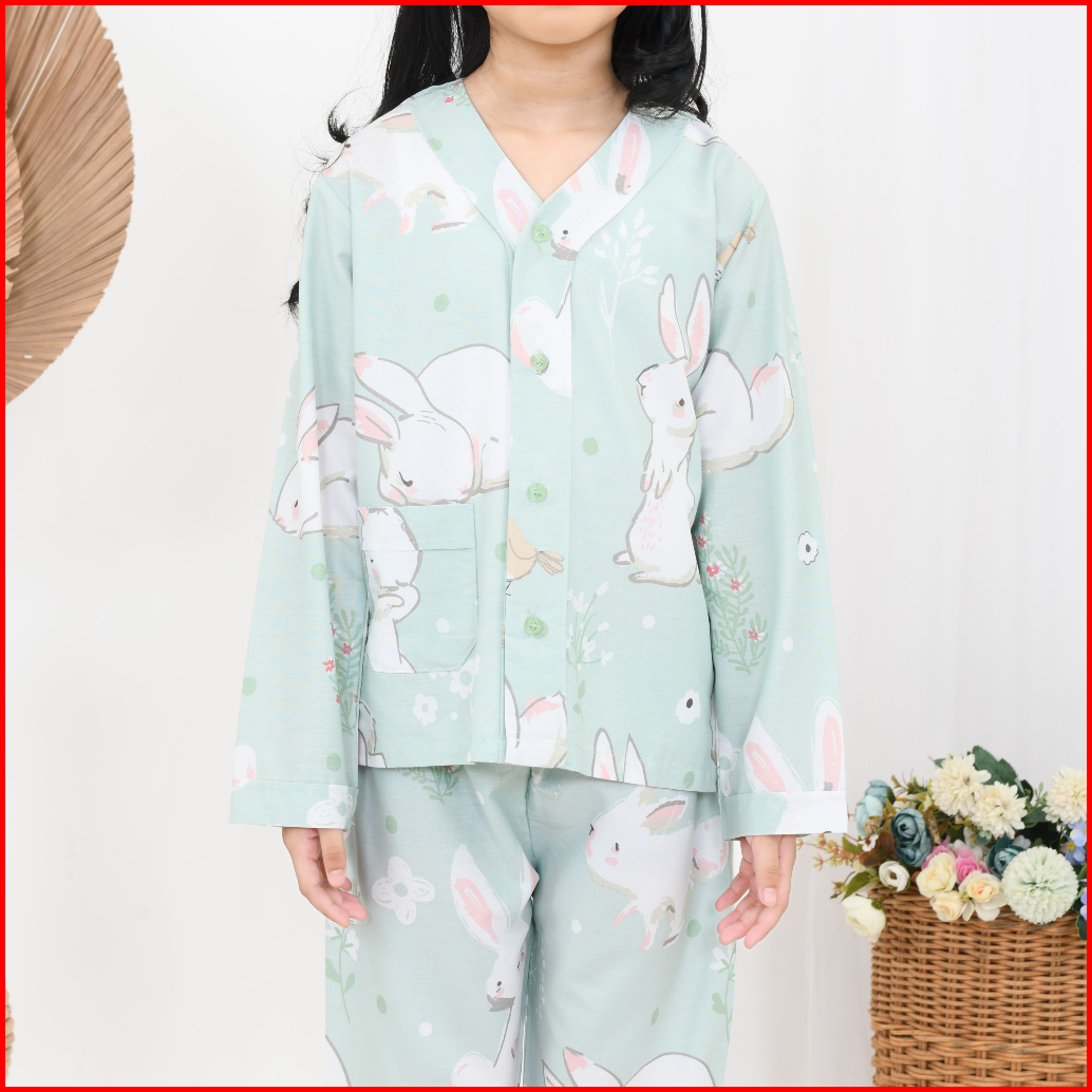 King Azlan Piyama Anak Tangan Panjang Motif Snow Rabit Green Untuk Usia 1-10 Tahun