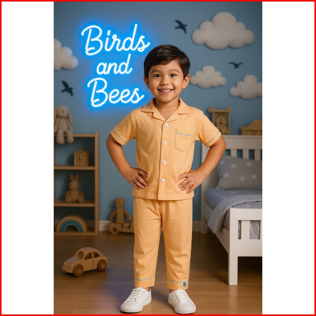 Birds And Bees Piyama Anak Lengan Pendek Celana Panjang Polos Dengan Aplikasi Bis Bold Color