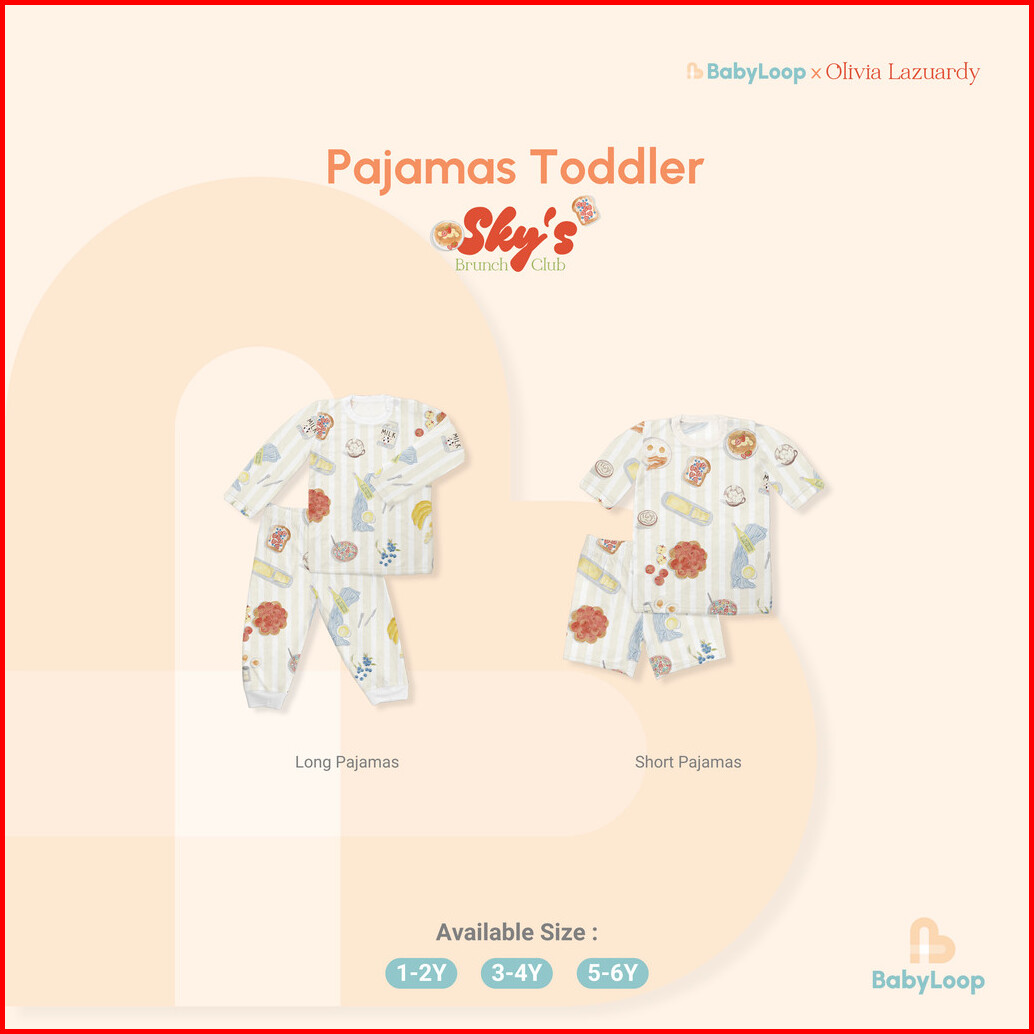 Baby Loop X Olivia Lazuardy - Pajamas Toddler Tencel Modal Skys Brunch Club Collection - Piyama Anak Tencel 1-6 Tahun