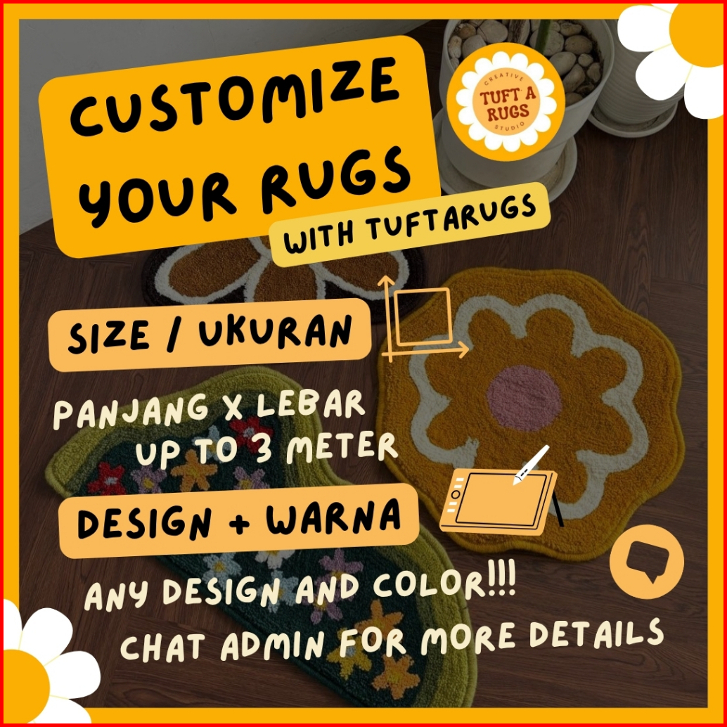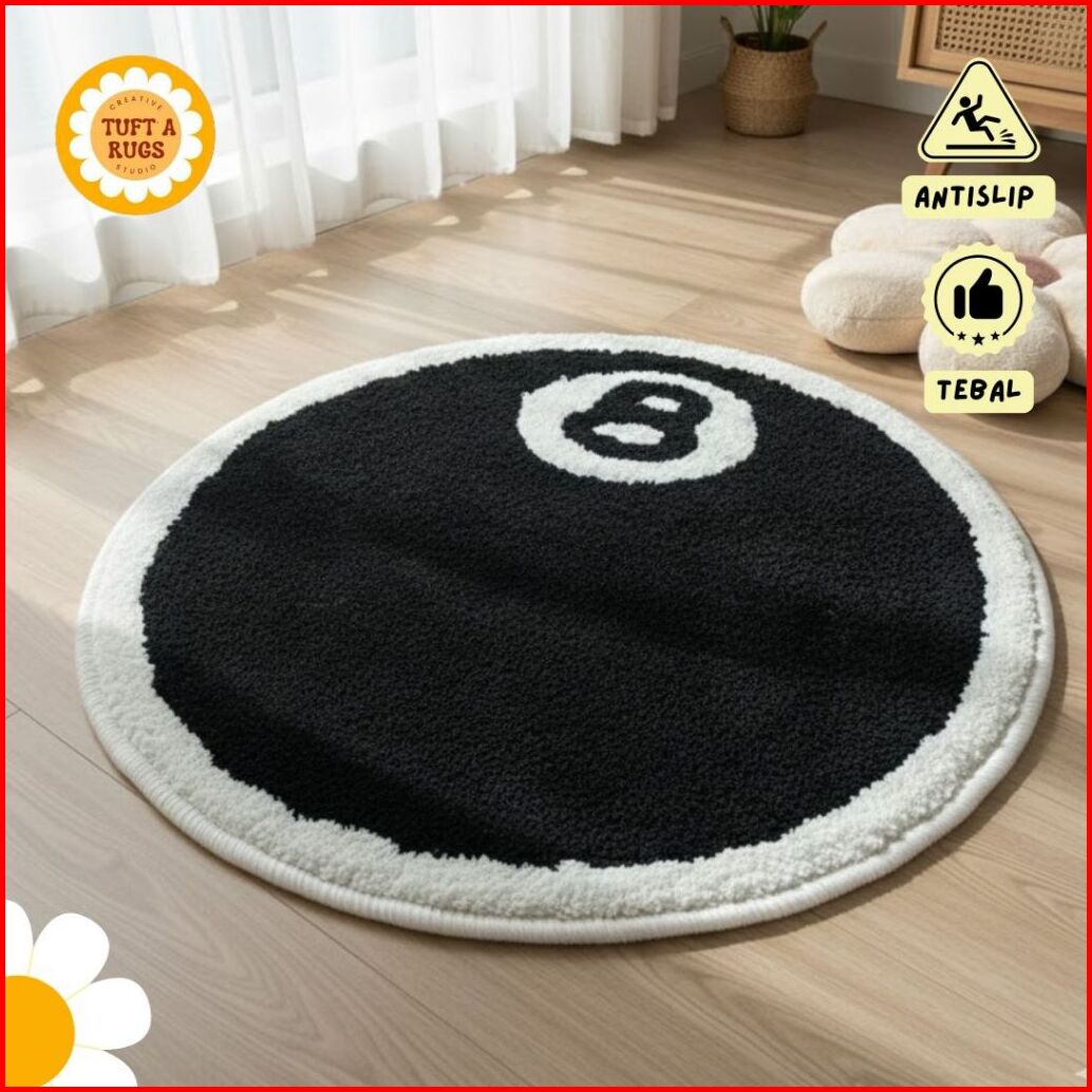 Tuftarugs Keset 8ball List Putih 50cm Tufting Bulu Halus Anti-slip Handtufted Custom Home Decor 50cm