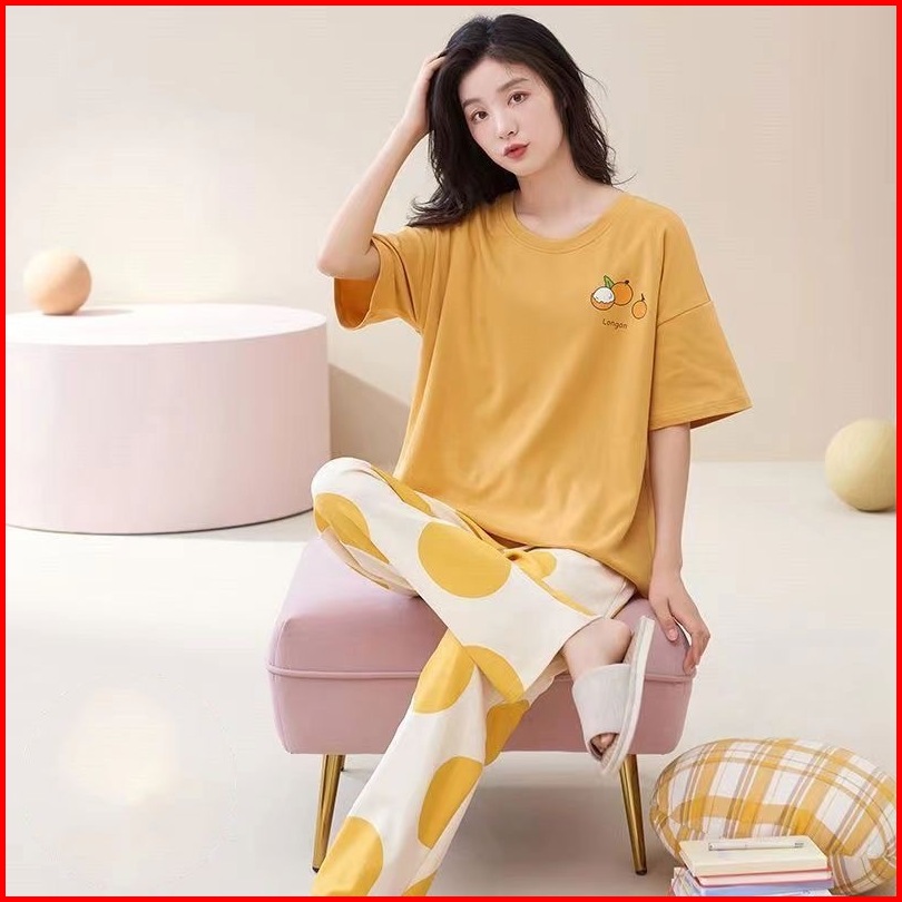 Set Piyama Wanita Katun Premium Lengan Pendek - Motif Kekinian Nyaman Dipakai Daster Baju Tidur Wanita Baju Tidur Piyama