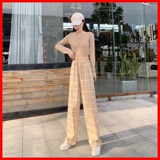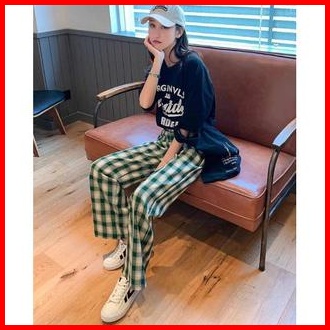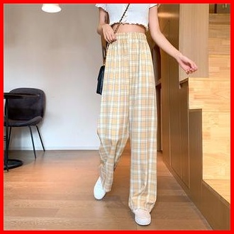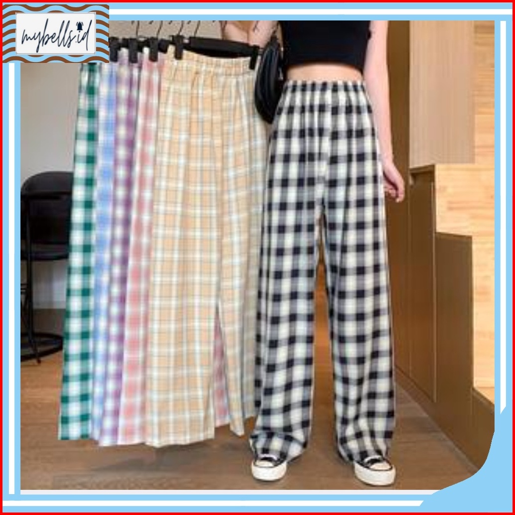 Mb Cpg280 Celana Panjang Wanita Motif Kotak - Kotak Casual Tartan Plaid Long Pants Korean Fashion