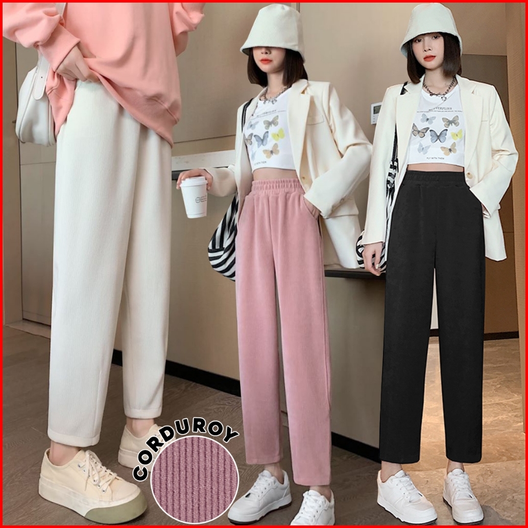 Karakorea 621 Corduroy Lounge Pants Celana Wanita Korea Celana Corduroy Highwaist Kulot Korean