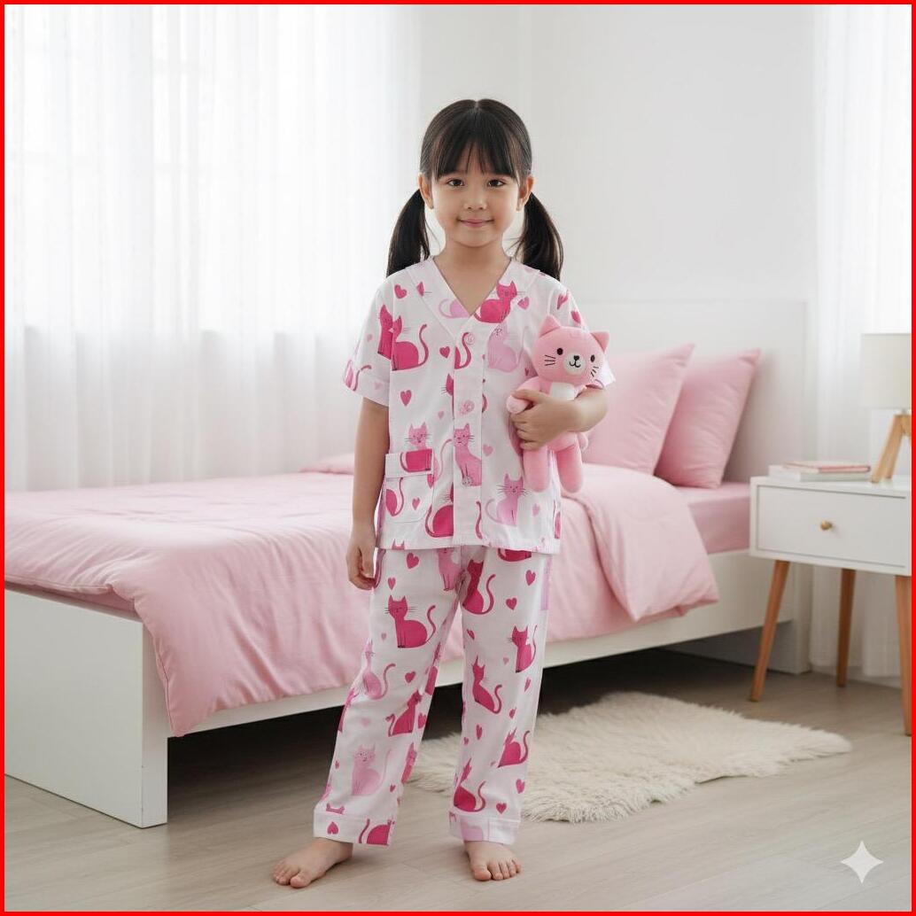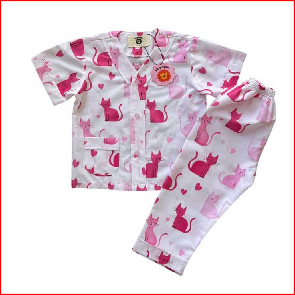 King Azlan Piyama Anak Perempuan Motif Love Cat Pink