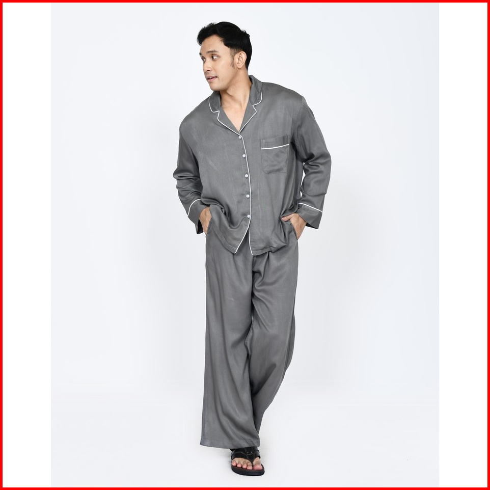 Piyama Lengan Panjang Cowok Pria Fit Bb 48-82kg Lezahrasignature Setcel Piama Celana Panjang100cm
