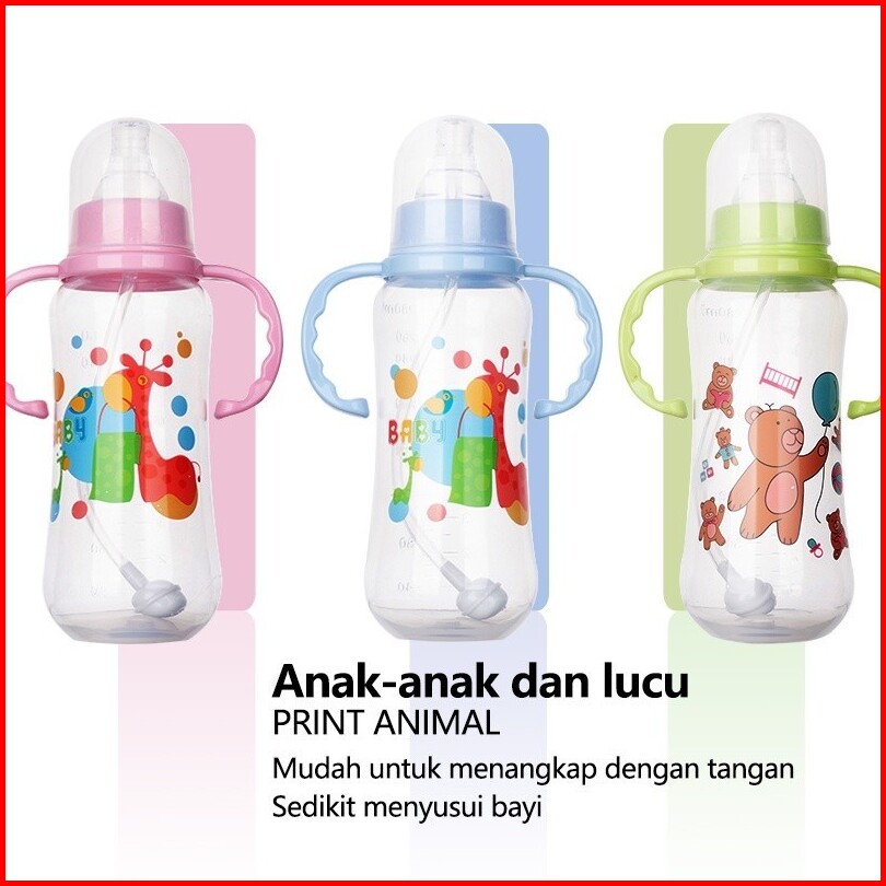 Botol Bayi 280ml Dengan Pegangan Dot Leher Tipis Botol Dot Bebas Bpa Xm-001