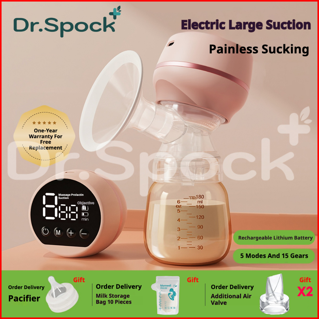 Dr.spock Pompa Asi Electric Breast Pump Portable Painless Bpa Free 5 Mode 15 Level 24mm 180ml - Eb06a