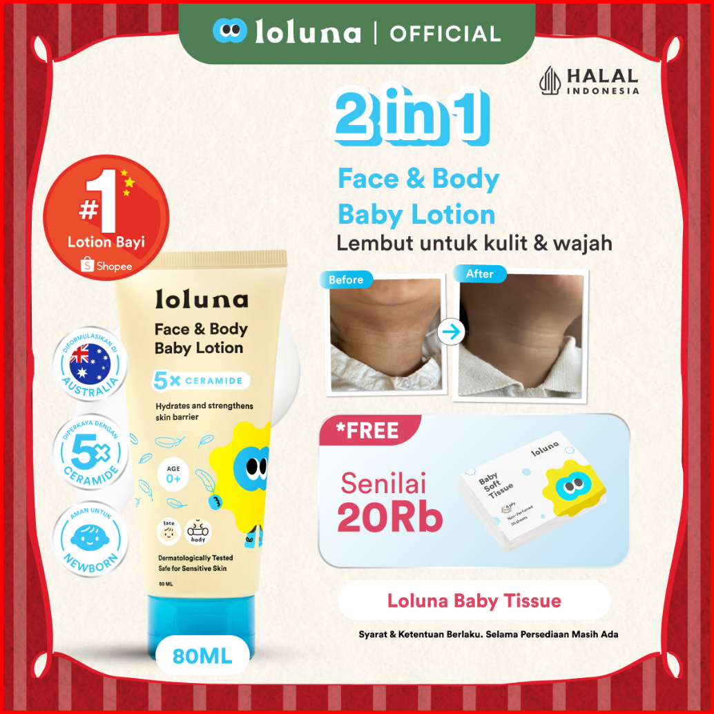 Loluna Face Body Baby Lotion- Lotion Krim Muka Dan Badan Bayi Dan Anak Krim Untuk Newborn 5x Ceramide
