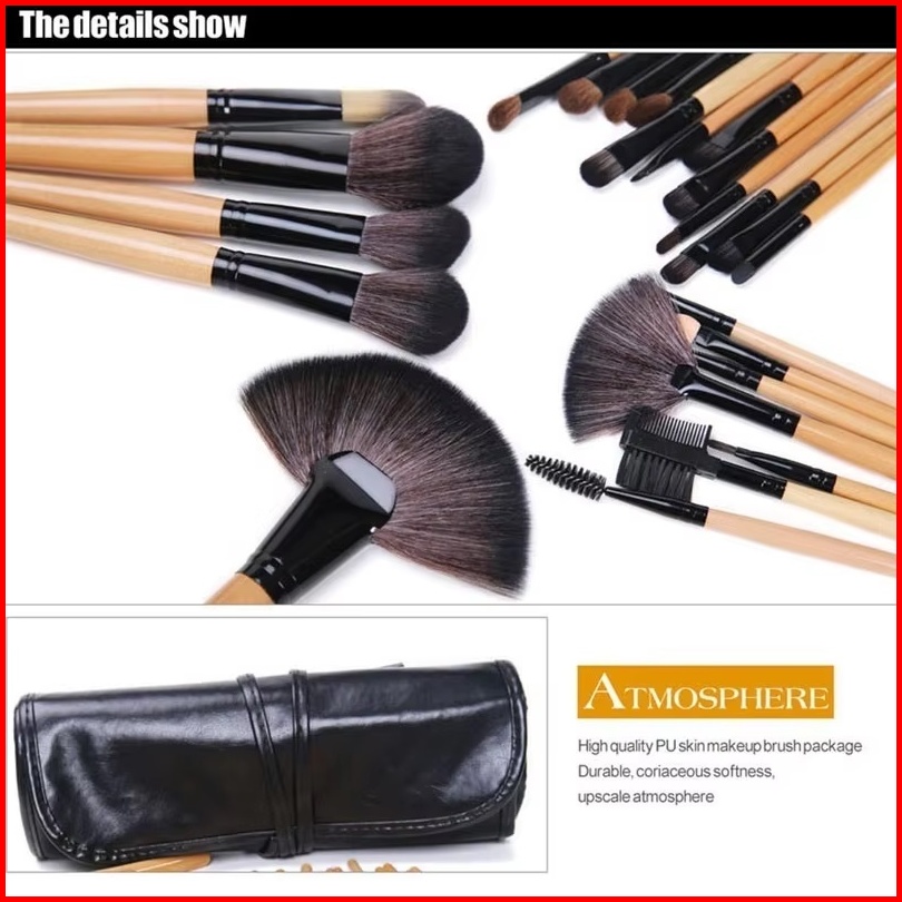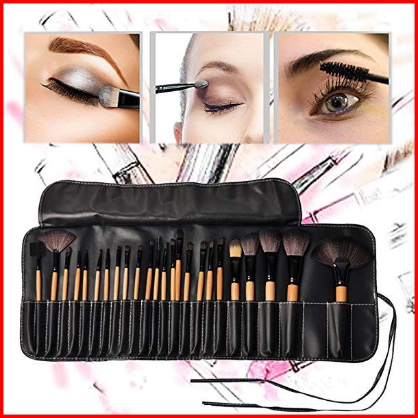 Venusjkt - Set Kuas Makeup 24 Pcs Bulu Tebal Free Dompet Kuas Eyeliner Foundation Blush Eyeshadow Gagang Kayu Elegan S00