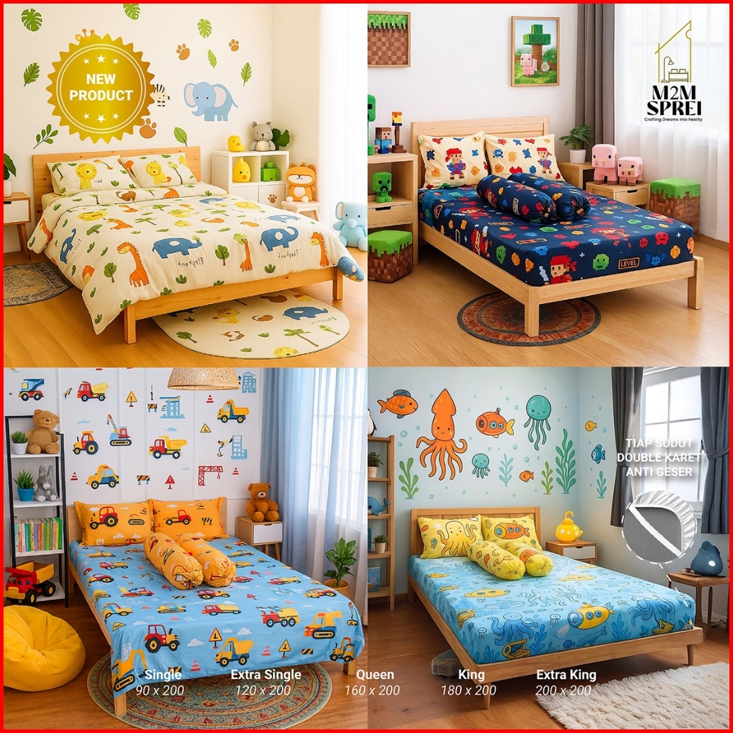 Sprei Double Karet Motif Karakter Anak Dan Remaja Anti Geser Tinggi 20 30 Cm Single Queen King