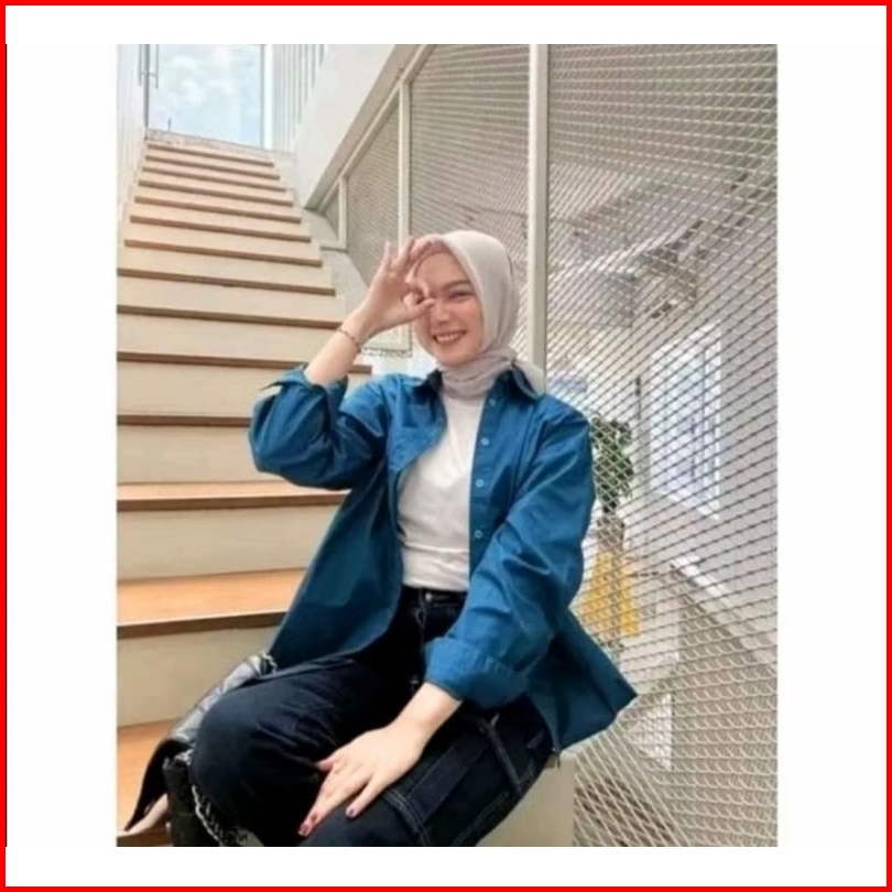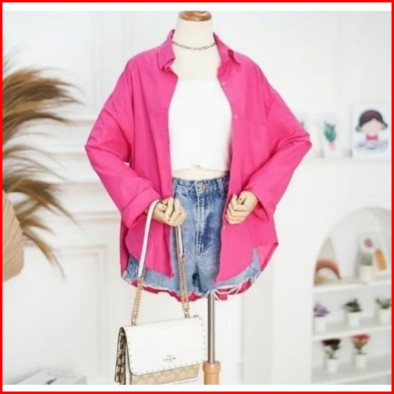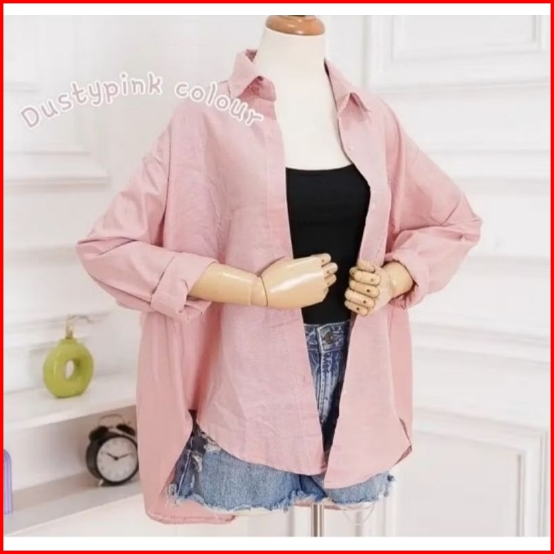 Kemeja Korean Style Oversize Kekinian Wanita Kemeja Full Kancing Kemeja Linen Kemeja Cewek Jumbo Atasan Cewek Kekinian