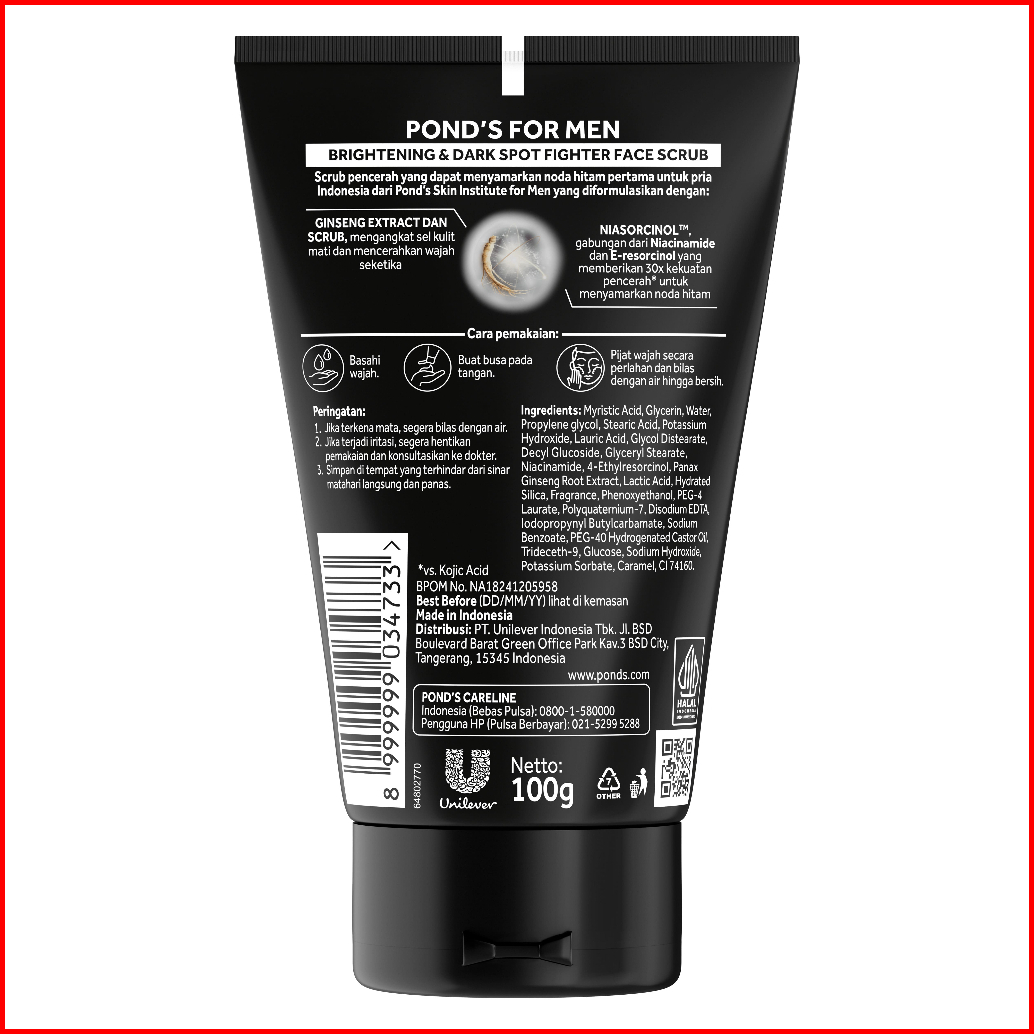 Ponds Skin Institute For Men Brightening Dark Spot Fighter Face Scrub 100g- Facial Scrub Pria Mencerahkan