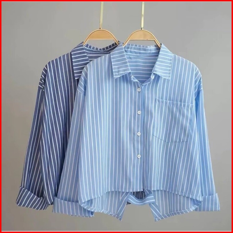Atasan Wanita Chasie Top Kemeja Salur Lengan Panjang