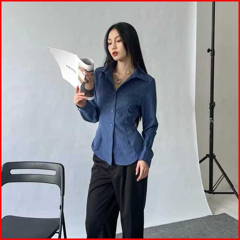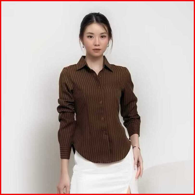 Luna Stripe Fitted Shirt - Kemeja Wanita - Atasaan Wanita - Atasan Wanita Stripe Salur - Kemeja Basic Lengan Pajang - Ke