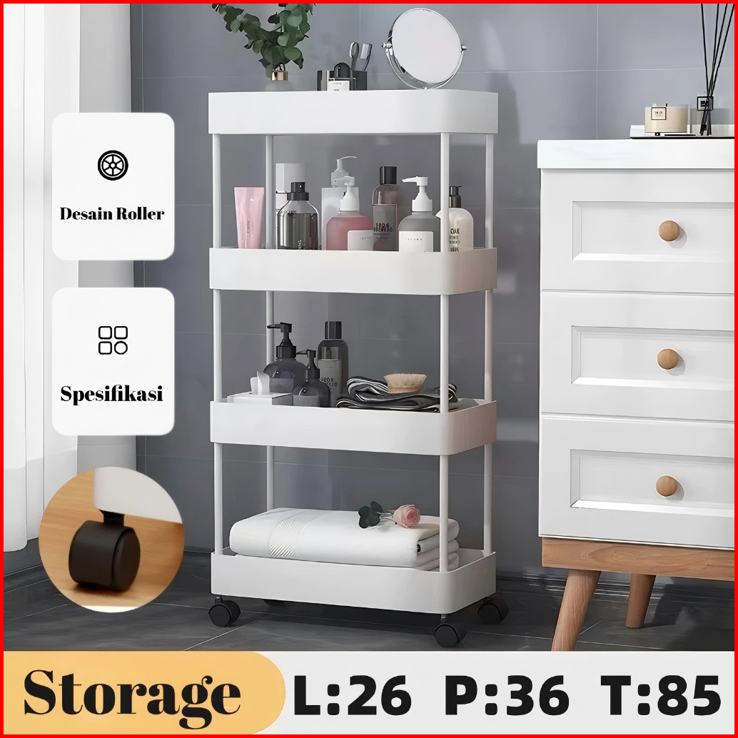 Rak Susun Serbaguna 4 Tingkat Bahan Plastik Dengan Roda Rak Kamar Mandi Bahan Plastik Portable Rak Dapur Square