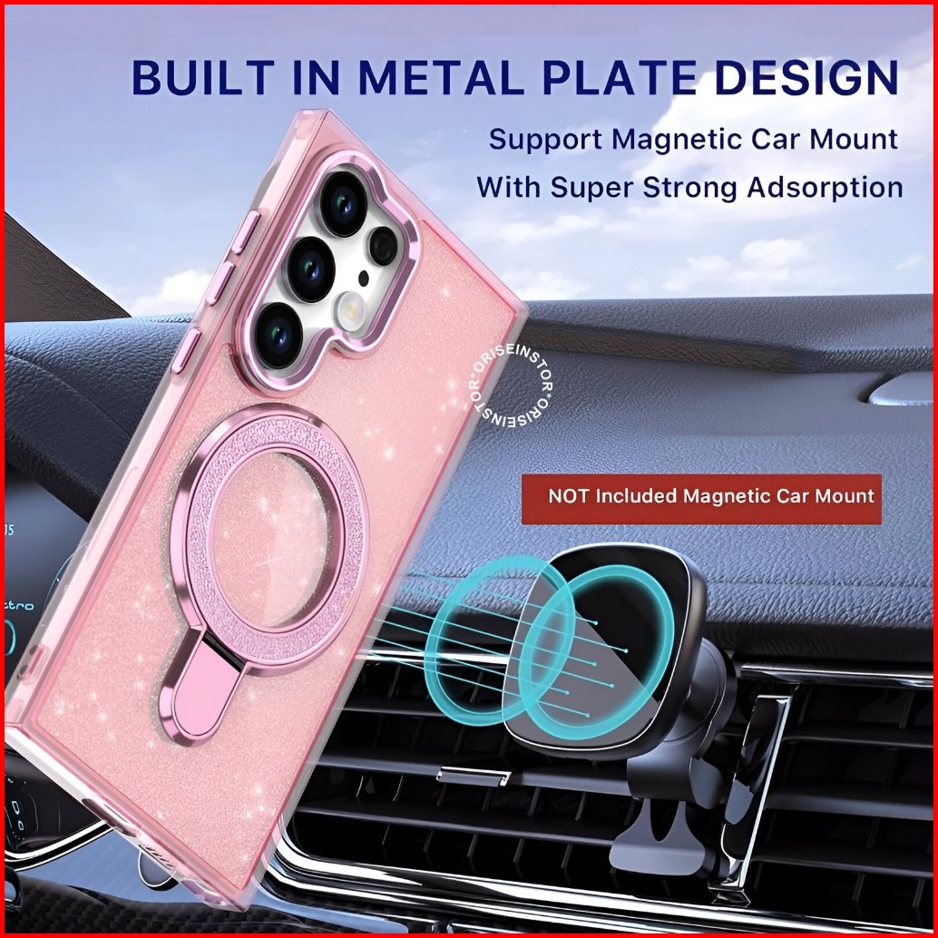 New Glitter Military Magsafe Case - Metal Plate Phone Case With Bracket Standable Magsafe - Hardcase Casing Hp Compatibl