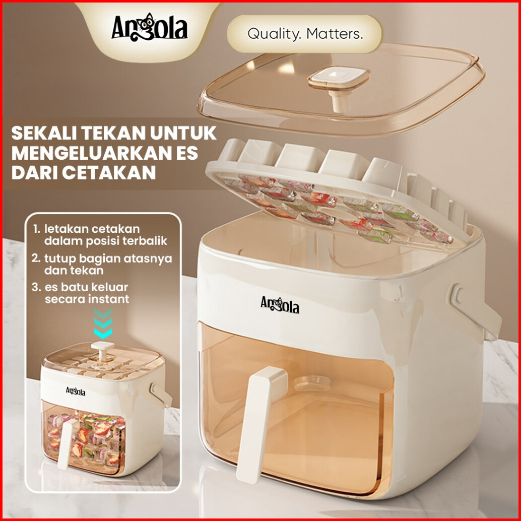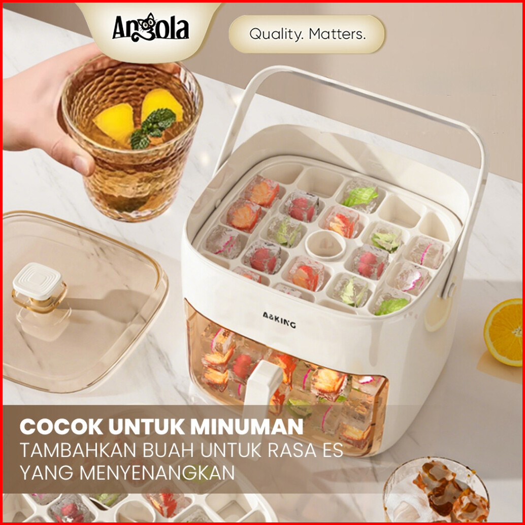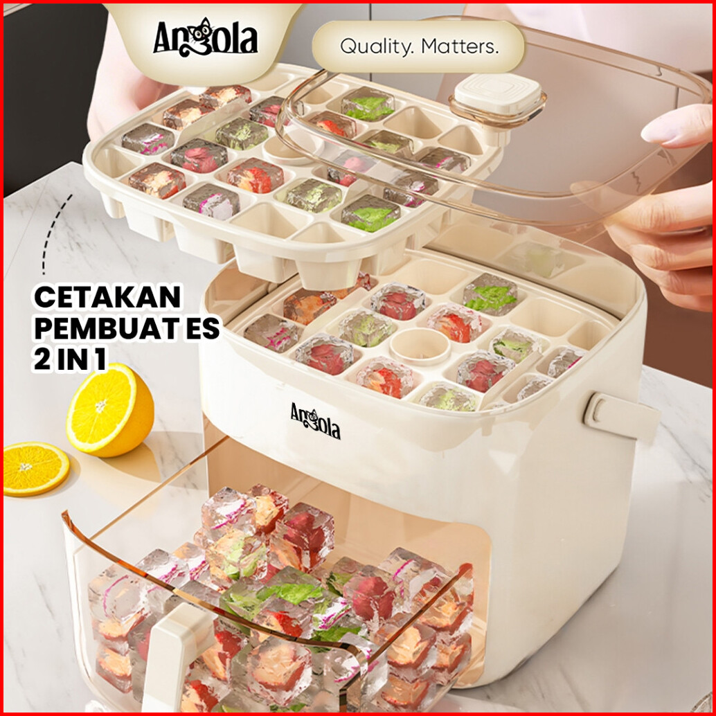 Angola Cetakan Es Batu Sekali Tekan E52 Ice Cube Maker Ice Storage Box Cetakan Wadah Es 2in1